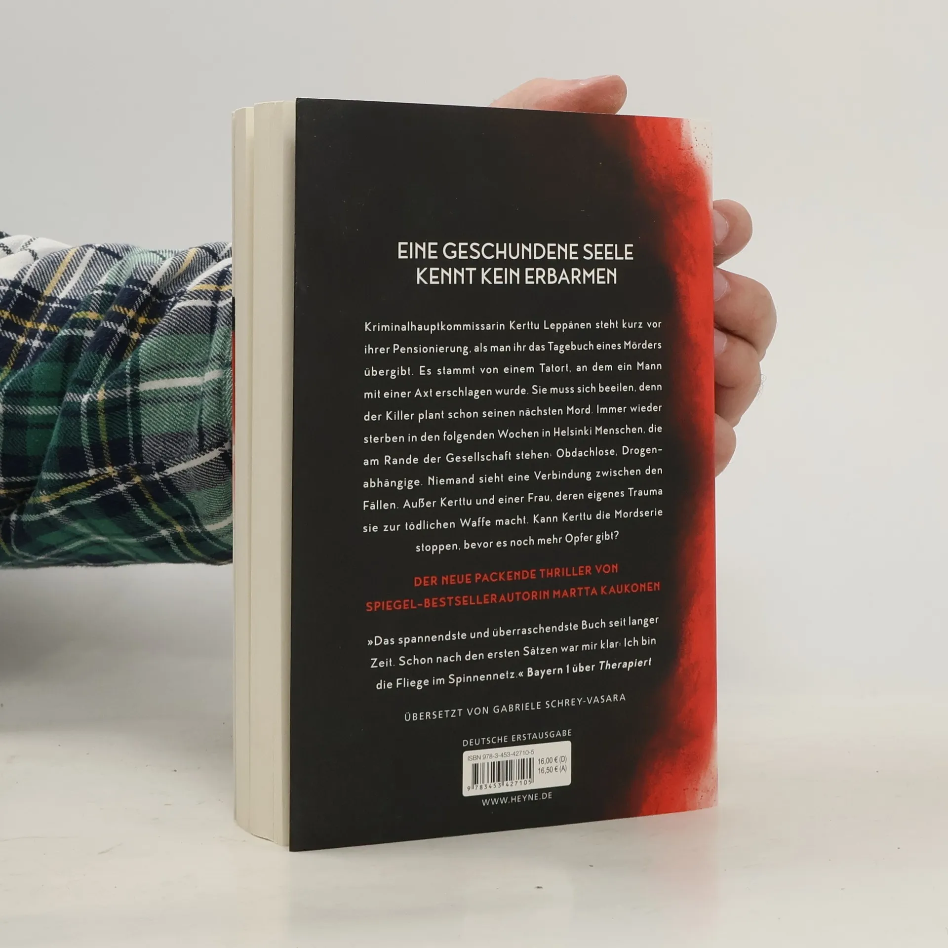 Ein Thriller wie ein Kaleidoskop. Mit jeder Wendung ergibt sich ein neues Bild. Vier Jahre ist es her, dass Ira eine Therapie gemacht hat, um die Dämonen ihrer Jugend hinter sich zu lassen. Inzwischen lebt sie bei ihrem Vater und arbeitet als Reporterin bei einer Zeitung. Kerttu, die Leiterin des Helsinkier Morddezernats steht derweil kurz vor ihrer Pensionierung, als man ihr das Tagebuch eines Mörders übergibt. Es stammt von einem Tatort, an dem ein Mann mit einer Axt erschlagen wurde. Sie muss sich beeilen, denn der Killer plant schon seinen nächsten Mord. Immer wieder sterben in den folgenden Wochen Menschen, die am Rande der Gesellschaft stehen: Obdachlose, Drogenabhängige. Niemand hegt einen Verdacht. Außer Kerttu und Ira. Doch weiß Ira womöglich mehr, als sie zugeben will?