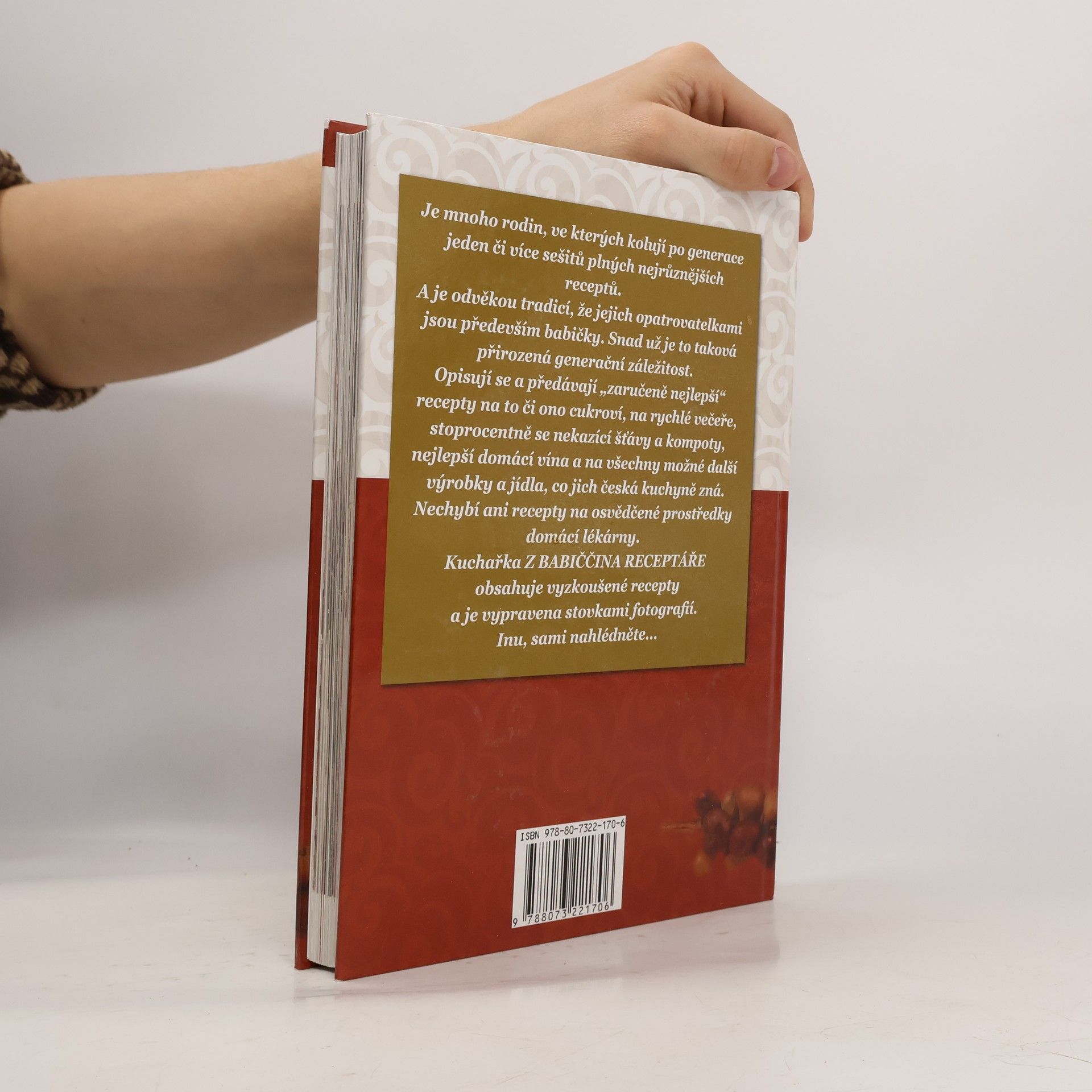 Mnoho z nás vzpomíná na ty vynikající pokrmy, které vařily naše babičky. A autoři této publikace vycházejí právě z receptů, které jim jejich babička po celá léta psala krasopisným písmem do linkovaných sešitů. Výpravná kuchařka s velkým množstvím fotografií přináší pestrou paletu receptů na výborná jídla a moučníky, návody na zavařování, nápady na využití bylinek, ovoce a zeleniny jakožto domácích léčebných prostředků a další časem a zkušenostmi prověřené léčebné prostředky.