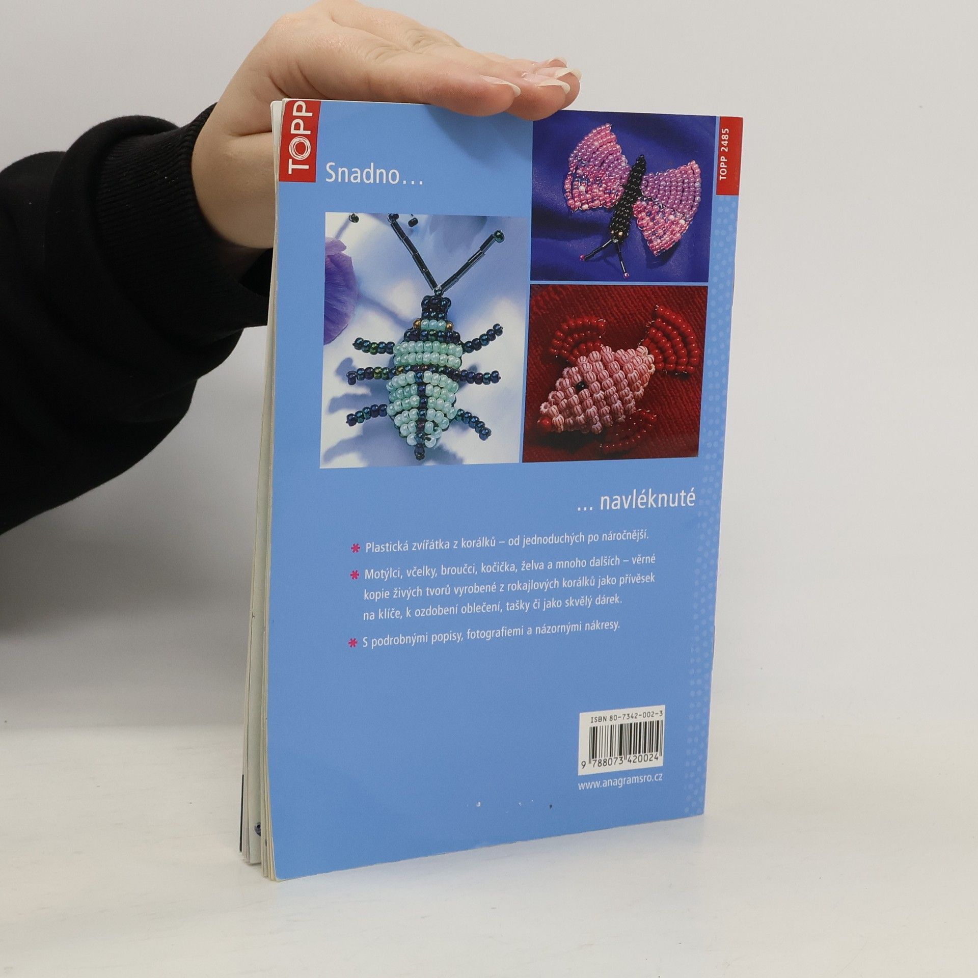 Vyrobte si plastická zvířátka z rokajlových korálků! Na stránkách naší knížky se houfují motýlci, vážky, včelky a broučci všech tvarů a barev. Čekají na vás také kočičky, želvy nebo medvěd. Možná, že se někdo z vás bojí pavouků, mušek, vos nebo hadů, ale ti z korálků vám hrůzu nenaženou. Díky podrobným návodům a přehledným obrázkům si je snadno vyrobíte a ozdobíte jimi třeba tašku nebo klíče.