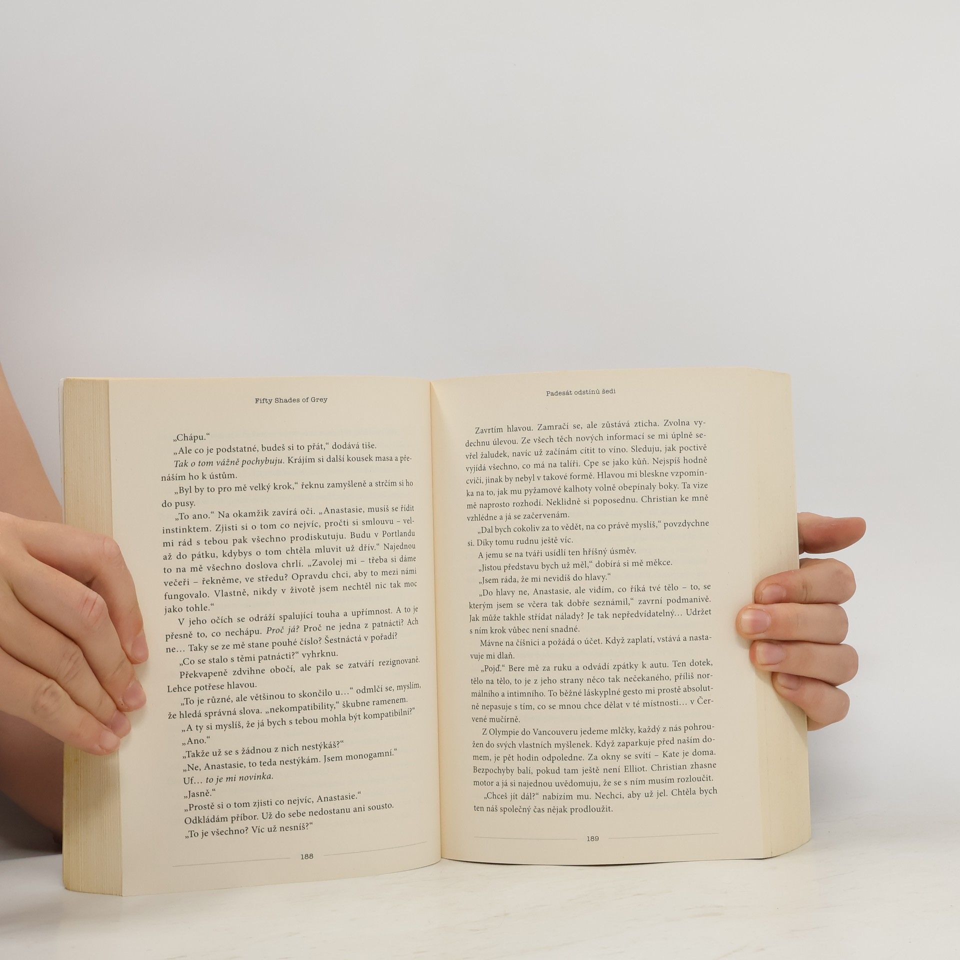 Erotický román o temných touhách v každém z nás… Když se dvaadvacetiletá studentka literatury Anastasia vydává na pohovor s mladým podnikatelem Christianem Greyem, netuší, že potká muže, který jí změní život i hodnoty. Christian je pohledný, chytrý a… tajemný. Naivní a nevinná Anastasia si začíná uvědomovat, že přes jeho skrývaná tajemství jím začíná být úplně posedlá. Ale ani Christian není vůči její kráse, šarmu a charakteru imunní a připouští, že on po ní také touží – ovšem za vlastních, specifických podmínek…