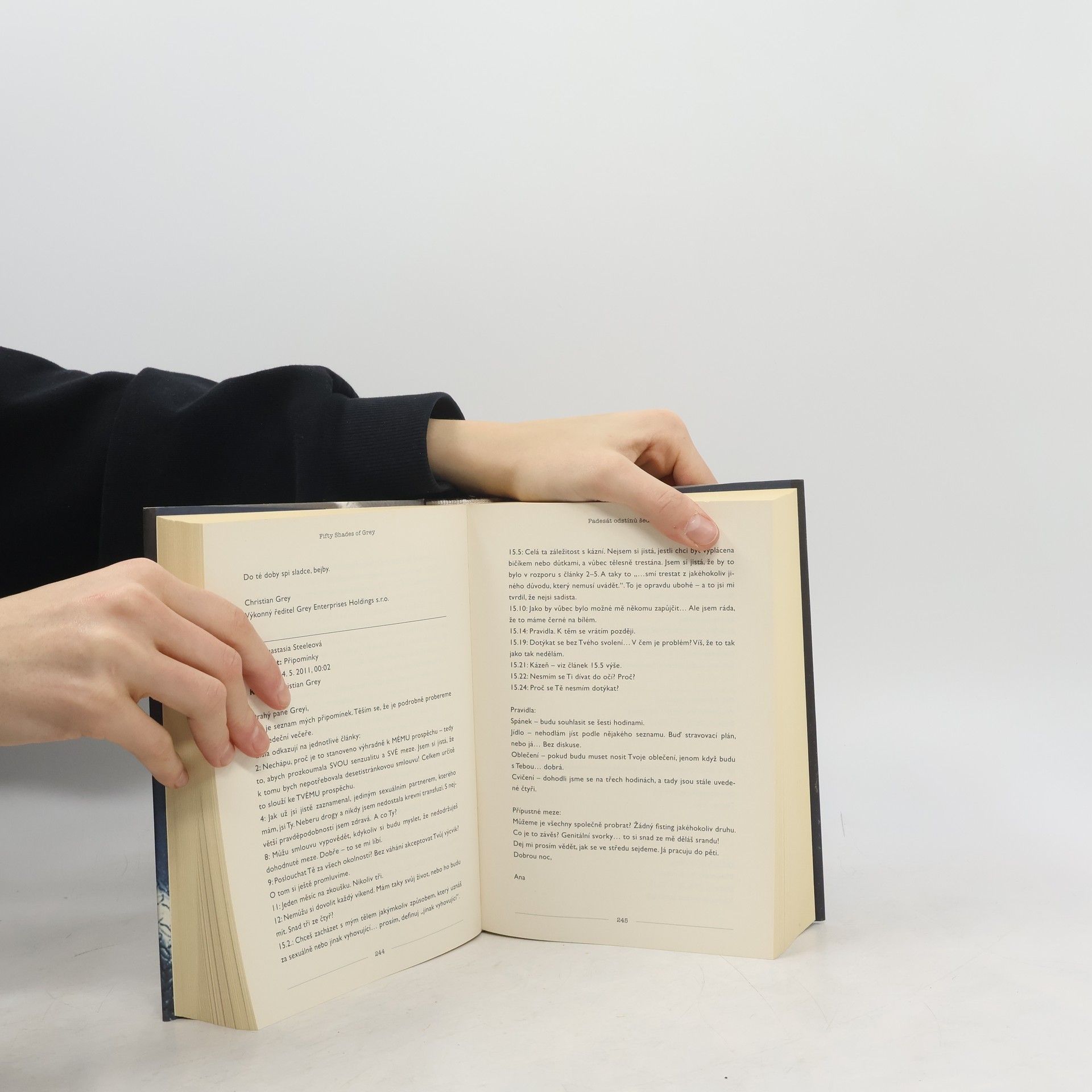 Erotický román o temných touhách v každém z nás… Když se dvaadvacetiletá studentka literatury Anastasia vydává na pohovor s mladým podnikatelem Christianem Greyem, netuší, že potká muže, který jí změní život i hodnoty. Christian je pohledný, chytrý a… tajemný. Naivní a nevinná Anastasia si začíná uvědomovat, že přes jeho skrývaná tajemství jím začíná být úplně posedlá. Ale ani Christian není vůči její kráse, šarmu a charakteru imunní a připouští, že on po ní také touží – ovšem za vlastních, specifických podmínek…