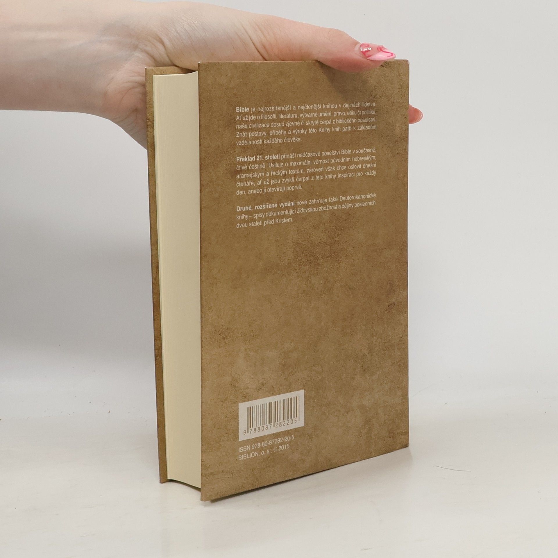 Druhé, rozšířené vydání nově zahrnuje také Deuterokanonické knihy – spisy dokumentující židovskou zbožnost a dějiny posledních dvou staletí před Kristem. Překlad 21. století přináší nadčasové poselství Bible v současné, čtivé češtině. Usiluje o maximální věrnost původním hebrejským, aramejským a řeckým textům, zároveň však chce oslovit dnešní čtenáře, ať už jsou zvyklí čerpat z té to knihy inspiraci pro každý den, anebo ji otevírají poprvé. Bible je nejrozšířenější a nejčtenější knihou v dějinách lidstva. Ať už jde o filosofii, literaturu, výtvarné umění, hudbu, architekturu, právo či politi ku, naše civilizace dosud zjevně či skrytě čerpá z biblického poselství. Znát postavy, příběhy a výroky této Knihy knih patří bezesporu k základům vzdělanosti každého člověka.