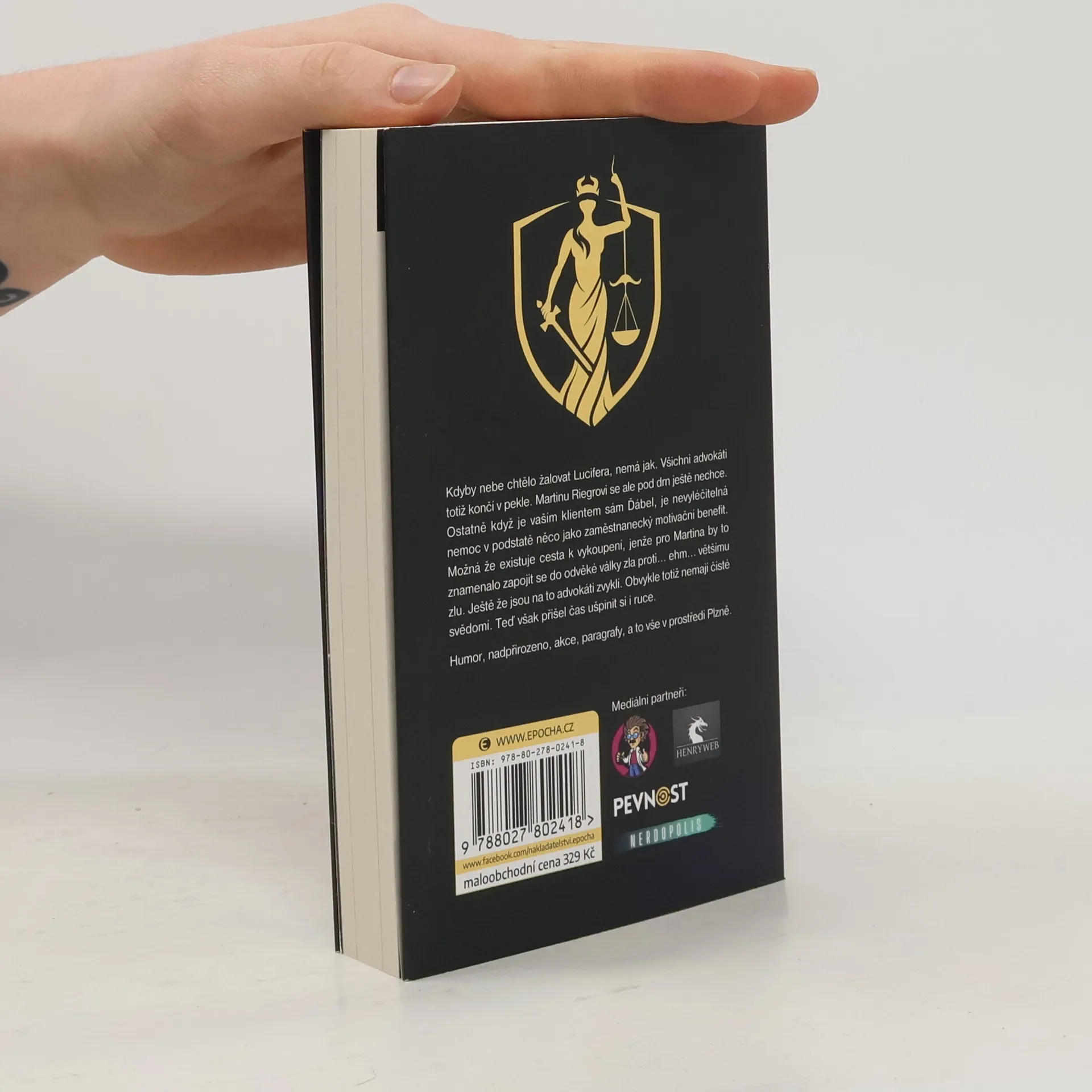 Kdyby nebe chtělo žalovat Lucifera, nemá jak. Všichni advokáti totiž končí v pekle. Martinu Riegrovi se ale pod drn ještě nechce. Ostatně když je vaším klientem sám Ďábel, je nevyléčitelná nemoc v podstatě něco jako zaměstnanecký motivační benefit. Možná že existuje cesta k vykoupení, jenže pro Martina by to znamenalo zapojit se do odvěké války zla proti… ehm… většímu zlu. Ještě že jsou na to advokáti zvyklí. Obvykle totiž nemají čisté svědomí. Teď však přišel čas ušpinit si i ruce.Humor, nadpřirozeno, akce, paragrafy, a to vše v prostředí Plzně.