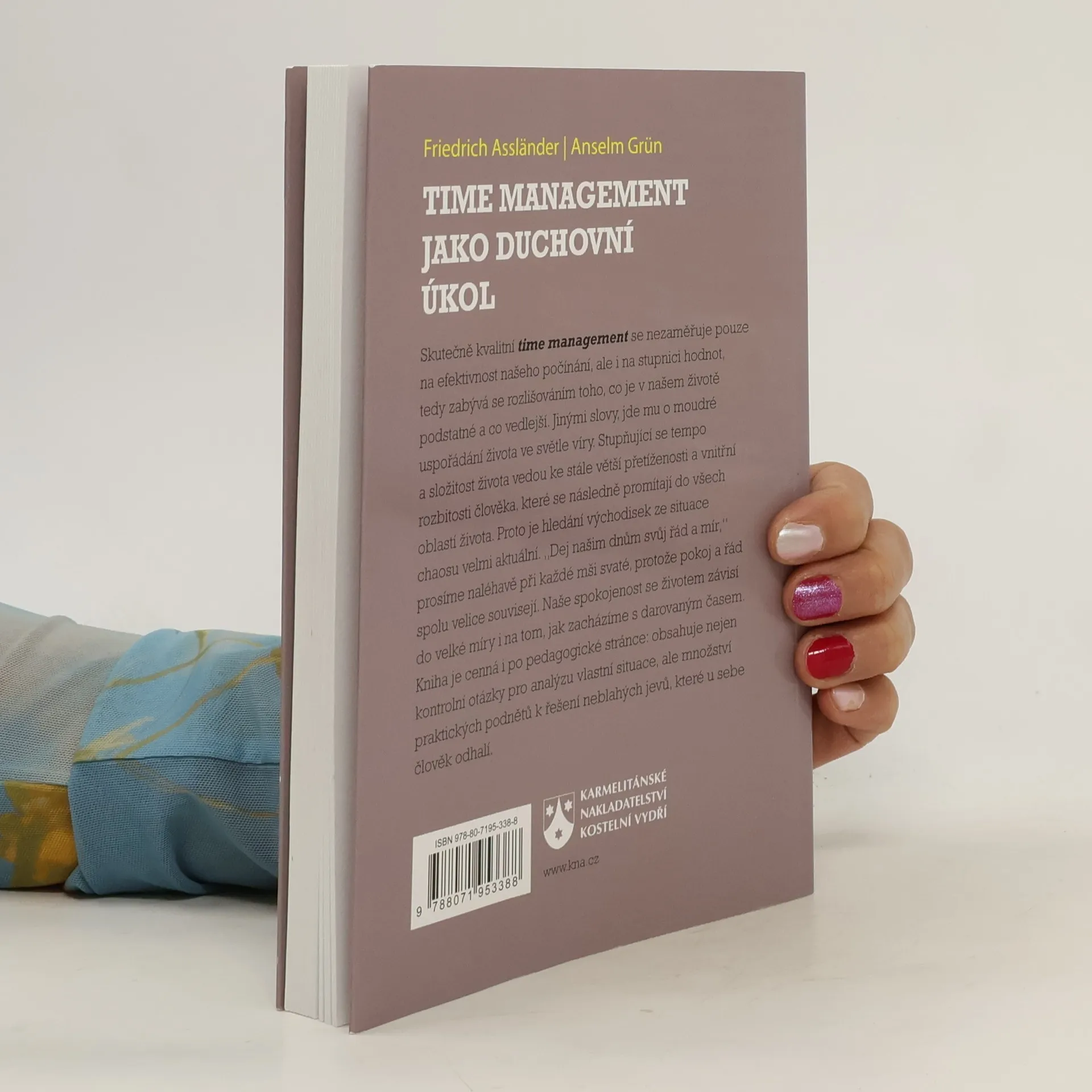 Čas jako omezená doba života nám připomíná, že náš život je konečný a krátký. Každý den bychom měli chápat jako možný poslední a uvědomovat si, že smrt dává našemu životu hodnotu. Vědomí vlastní smrti nás vybízí prožít každý den naplno a s vděčností. Svatý Benedikt nabádal své mnichy, aby si denně připomínali smrt, což má vést k tomu, abychom se jí nebáli. Tato myšlenka nás motivuje žít vědomě a vděčně. Jak zacházíme se svým časem, ovlivňuje naši spokojenost a pracovní výkon. Efektivní řízení času zahrnuje nejen disciplínu, ale i zaměření na skutečné hodnoty a hledání rovnováhy v životě. Autoři, odborník na podnikový management a benediktinský mnich, nabízejí podněty pro uspořádání vlastního času a zkoumají moderní „past urychlování“. Benediktinské „Ora et labora“ platí nejen pro řeholníky, ale i pro běžné lidi, kteří hledají umění přestávky a správný management sebe sama, uznávající osobní meze. Oba autoři mají bohaté zkušenosti a znalosti v oblastech psychologie, spirituality a řízení, přičemž čerpají z tradice západního mnišství a hlubinné psychologie.