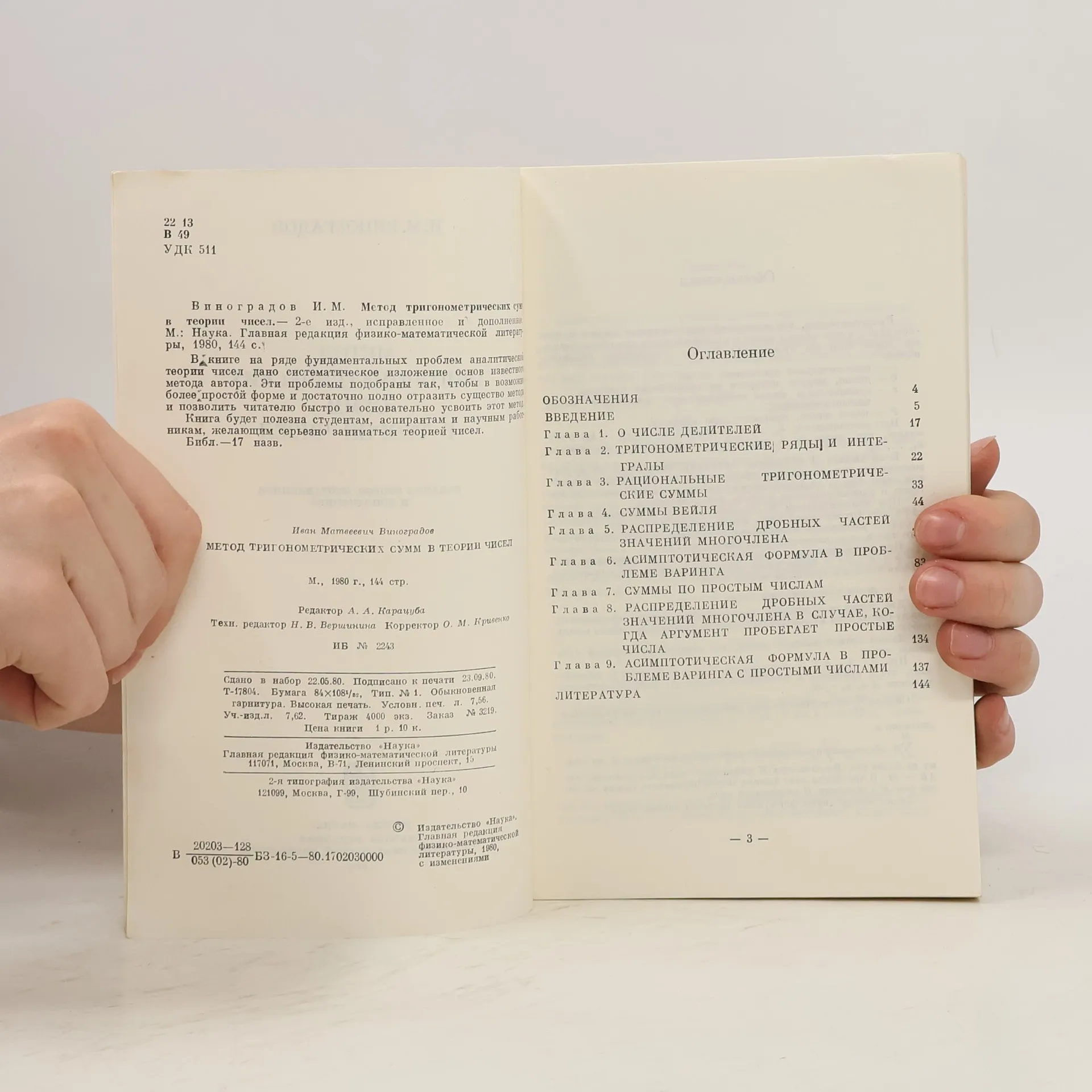 Метод тригонометрических сумм в теории чисел, И. М. Виноградов