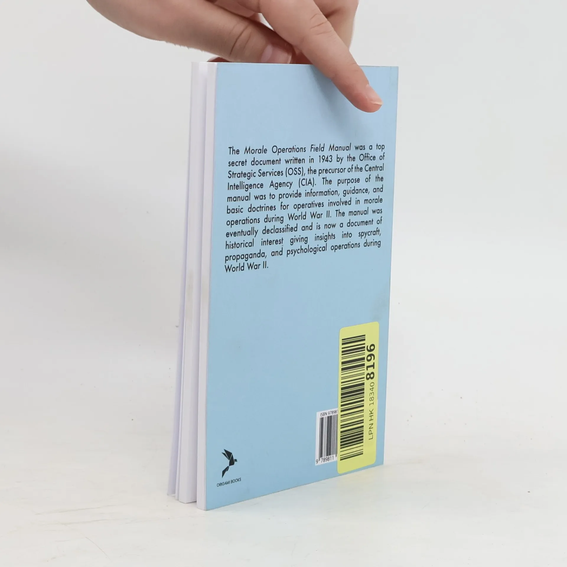"The Morale Operations Field Manual was a top secret document written in 1943 by the Office of Strategic Services (OSS), the precursor of the Central Intelligence Agency (CIA). The purpose of the manual was to provide information, guidance, and basic doctrines for operatives involved in moral operations during World War II. The manual was eventually declassified and is now in the public domain due to it being a work of the United States federal government. This book is republished by Origami Books due to its historical value. This book is intended for historical interests and is not to be used as guide for illegal conducts."--Publisher's note.