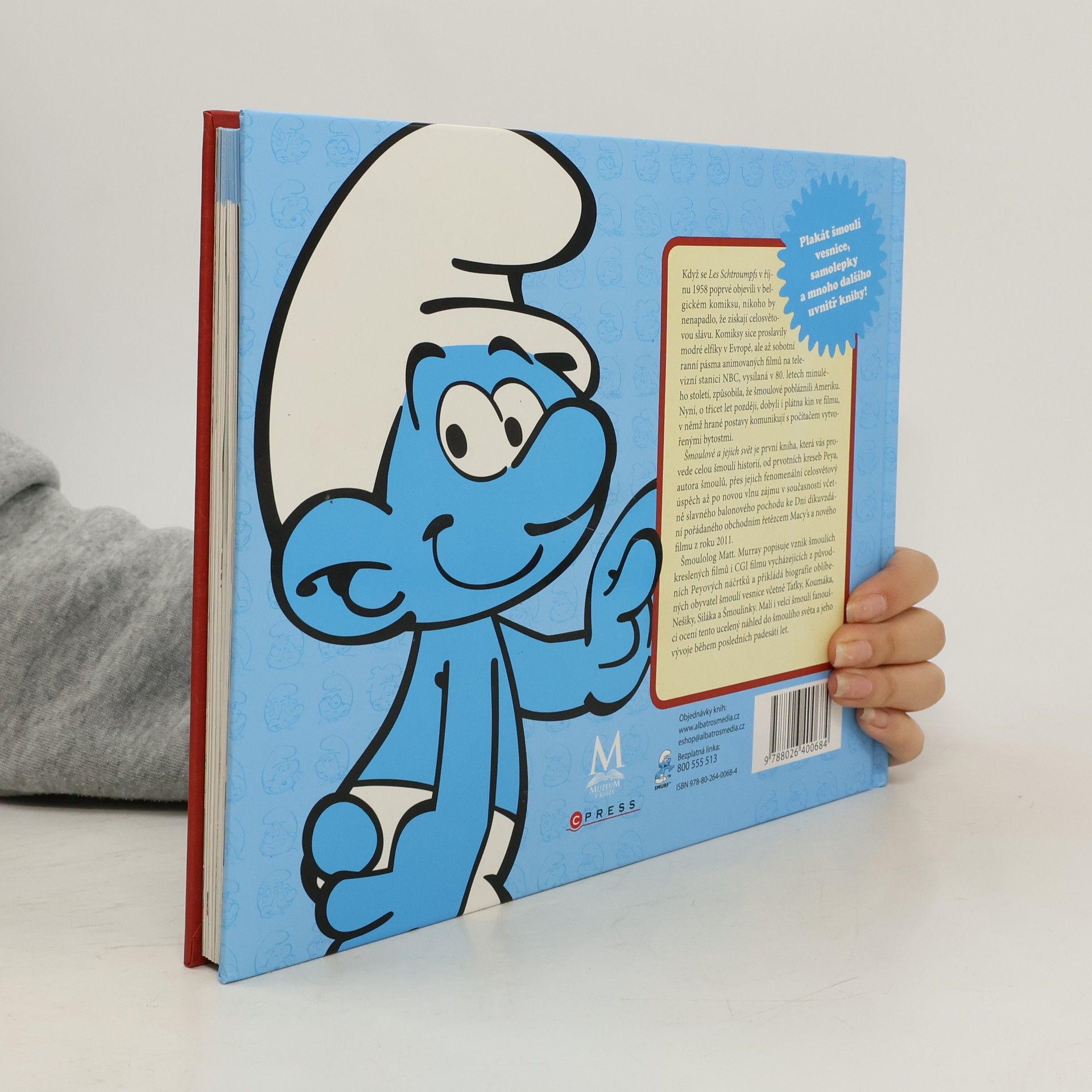 Když se Les Schtroumpfs v říjnu 1958 poprvé objevili v belgickém komiksu, nikoho by nenapadlo, že získají celosvětovou slávu. Komiksy sice proslavily modré elfíky v Evropě, ale až sobotní ranní pásma animovaných filmů na televizní stanici NBC, vysílaná v 80. letech minulého století, způsobila, že šmoulové pobláznili Ameriku. Nyní, o třicet let později, dobyli i plátna kin ve filmu, v němž hrané postavy komunikují s počítačem vytvořenými bytostmi. Šmoulové a jejich svět je první kniha, která vás provede celou šmoulí historií, od prvotních kreseb Peya, autora šmoulů, přes jejich fenomenální celosvětový úspěch až po novou vlnu zájmu v současnosti včetně slavného balonového pochodu ke Dni díkuvzdání pořádaného obchodním řetězcem Macy’s a nového fi lmu z roku 2011. Malí i velcí šmoulí fanoušci ocení tento ucelený náhled do šmoulího světa a jeho vývoje během posledních padesáti let.