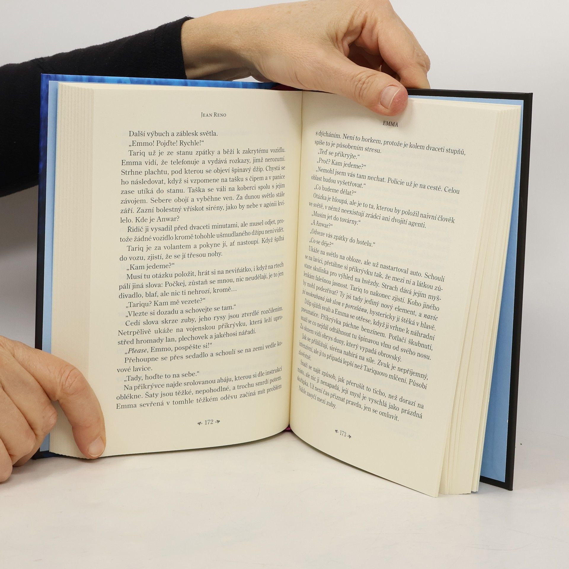 Napětí, špionáž a zničující láska. Debutový román ikony francouzského filmu. Emma, která pracuje jako masérka v jednom z bretaňských center thalassoterapie, přijme nabídku vyškolit personál luxusního wellness centra v Ománu. Exotická země ji zcela okouzlí, stejně jako šéf resortu, syn vlivného ministra. Neskutečně přitažlivý muž však za svým okouzlujícím úsměvem skrývá nejedno tajemství – a Emma se tak ocitá uprostřed smrtelně nebezpečných politických intrik. Začíná hra na kočku a myš plná pronásledování, nástrah a nečekaných zvratů. Emma se však nehodlá stát snadným terčem…