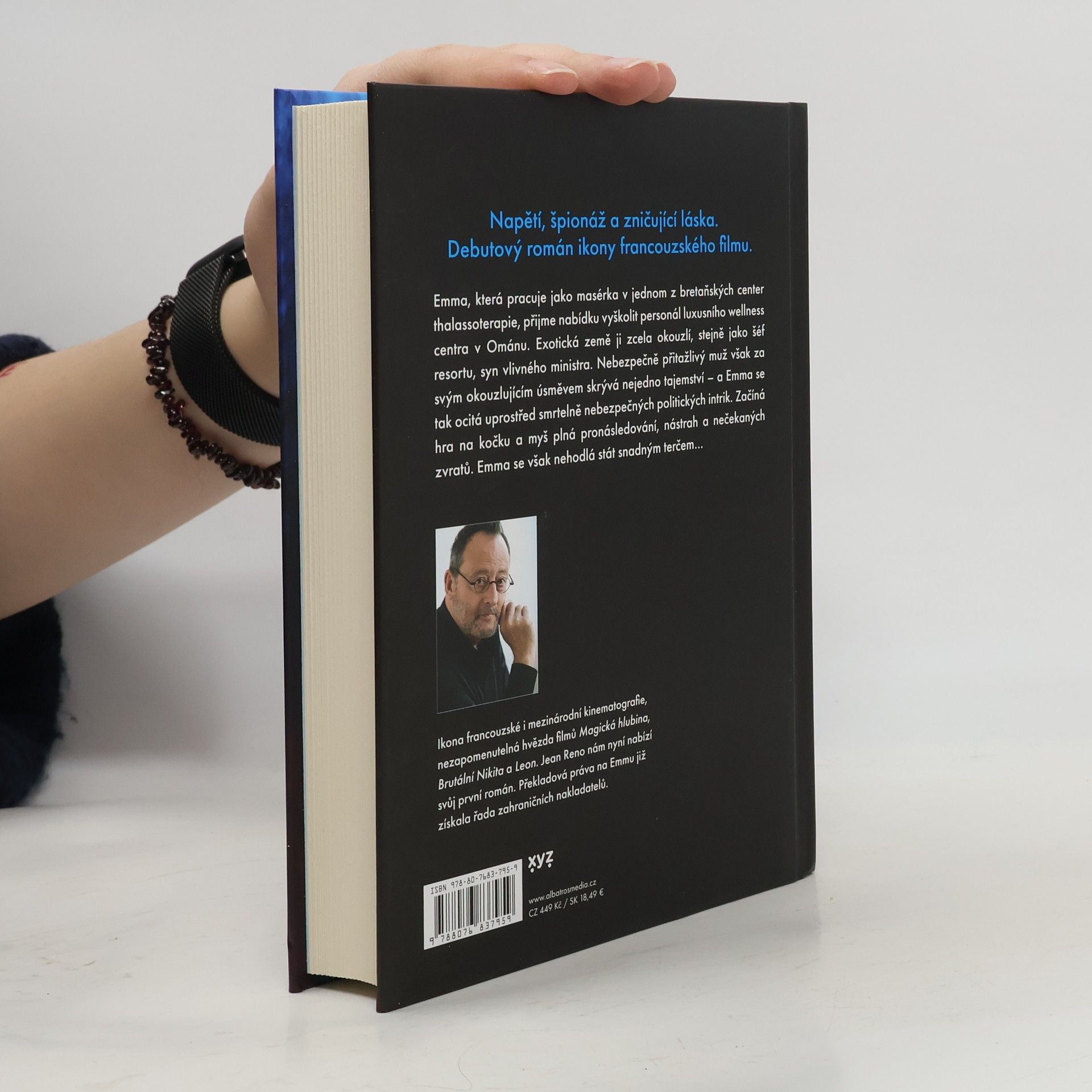 Napětí, špionáž a zničující láska. Debutový román ikony francouzského filmu. Emma, která pracuje jako masérka v jednom z bretaňských center thalassoterapie, přijme nabídku vyškolit personál luxusního wellness centra v Ománu. Exotická země ji zcela okouzlí, stejně jako šéf resortu, syn vlivného ministra. Neskutečně přitažlivý muž však za svým okouzlujícím úsměvem skrývá nejedno tajemství – a Emma se tak ocitá uprostřed smrtelně nebezpečných politických intrik. Začíná hra na kočku a myš plná pronásledování, nástrah a nečekaných zvratů. Emma se však nehodlá stát snadným terčem…