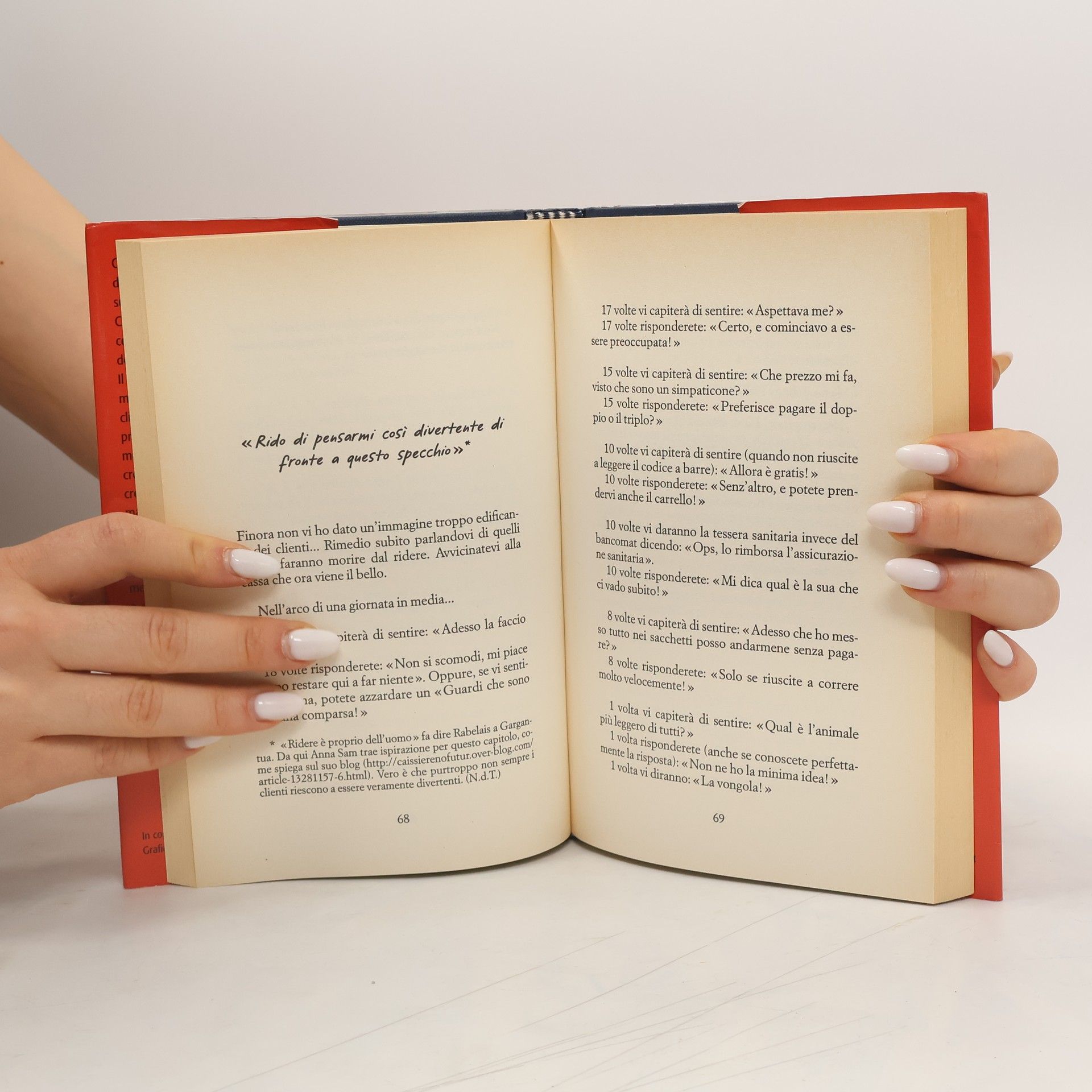 Che visione si può avere del mondo e delle persone da dietro la cassa di un supermercato? Che idea si fa la cassiera di quel che comprano i clienti, di quel che dicono, delle domande che fanno? Il passaggio alla cassa è un momento molto particolare, ma in qualità di clienti noi pensiamo - a torto - che sia privo di alcun significato e per questo ci mostriamo come siamo, senza veli: crediamo che la cassiera non ci veda, crediamo addirittura che sia quasi una macchina. Ma quando la cassiera si chiama Anna Sam, ha una laurea in lettere e gli occhi bene aperti, allora tutti i nostri comportamenti, più o meno corretti, più o meno garbati, più o meno stravaganti finiscono sotto la sua lente di ingrandimento per poi venire registrati in maniera indelebile in un libro divertentissimo e senza eguali.