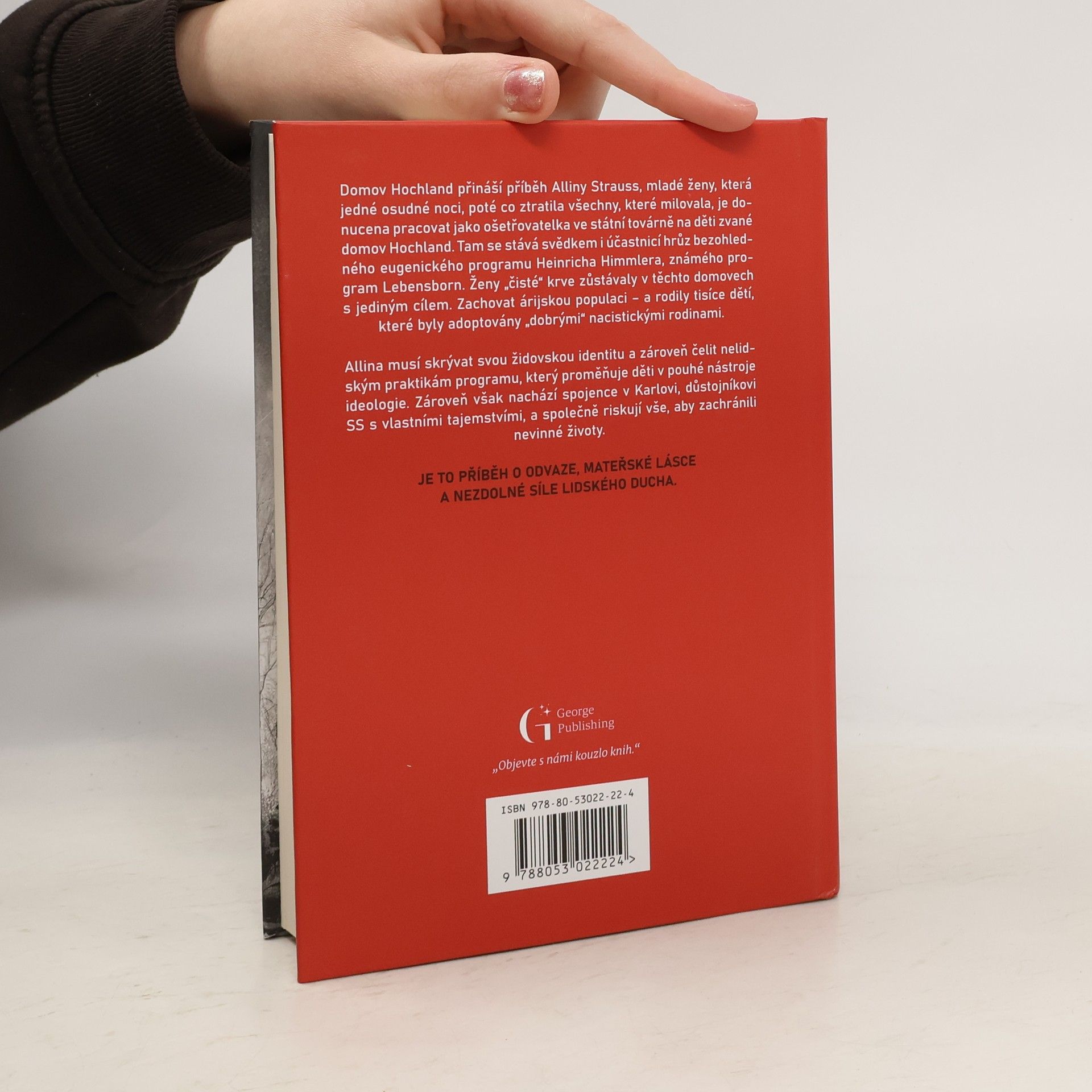 Domov Hochland přináší příběh Alliny Strauss, mladé ženy, která jedné osudné noci, poté co ztratila všechny, které milovala, je donucena pracovat jako ošetřovatelka ve státní továrně na děti zvané domov Hochland. Tam se stává svědkem i účastnicí hrůz bezohledného eugenického programu Heinricha Himmlera, známého jako program Lebensborn. Ženy „čisté“ krve zůstávaly v těchto domovech s jediným cílem. Zachovat árijskou populaci – a rodily tisíce dětí, které byly adoptovány „dobrými“ nacistickými rodinami. Allina musí skrývat svou židovskou identitu a zároveň čelit nelidským praktikám programu, který proměňuje děti v pouhé nástroje ideologie. Zároveň však nachází spojence v Karlovi, důstojníkovi SS s vlastními tajemstvími, a společně riskují vše, aby zachránili nevinné životy. Je to příběh o odvaze, mateřské lásce a nezdolné síle lidského ducha.