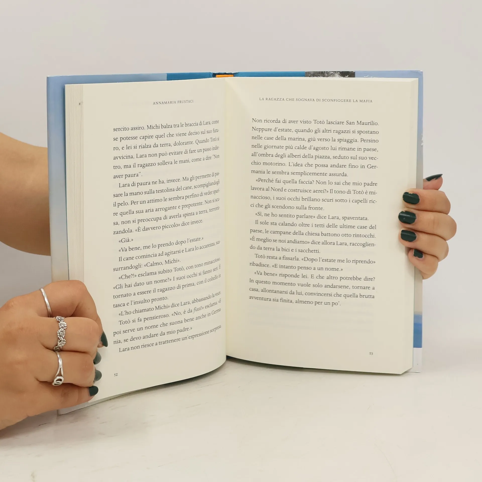 Giustizia: che bella parola! Eppure è impronunciabile, in quel paese che dall'alto della collina scambia sguardi con il mare infinito della Calabria. Lara l'ha capito presto, tra gli ulivi del nonno, alle prese con i soprusi del vicino di casa, e sui banchi di scuola, dove a dettare legge sono Totò e i suoi amici. Un giorno, in un edificio abbandonato, Lara e Totò trovano un cagnolino bianco e morbido, che guaisce chiedendo aiuto. È lei a vederlo per prima, eppure il ragazzo reclama prepotentemente il suo diritto di tenere il cucciolo tutto per sé: non ci sta a farselo portare via da quella ragazzina che lo affronta a testa alta, senza paura. Ma Lara ha ormai intuito che il solo modo per sconfiggere la mafia, che serpeggia tra le case e le vie del paese, è guardarla in faccia con onestà e coraggio. Così decide di fare a Totò una proposta che non può rifiutare... Costellata dalle figure straordinarie di Falcone e Borsellino, magistrati vittime della mafia nel 1992, e di Gherardo Colombo, ex magistrato d'ispirazione per la protagonista e per molti, una storia di crescita e riscatto per raccontare ai ragazzi che di fronte alla mafia c'è sempre la possibilità di percorrere una strada diversa. Età di lettura: da 10 anni.