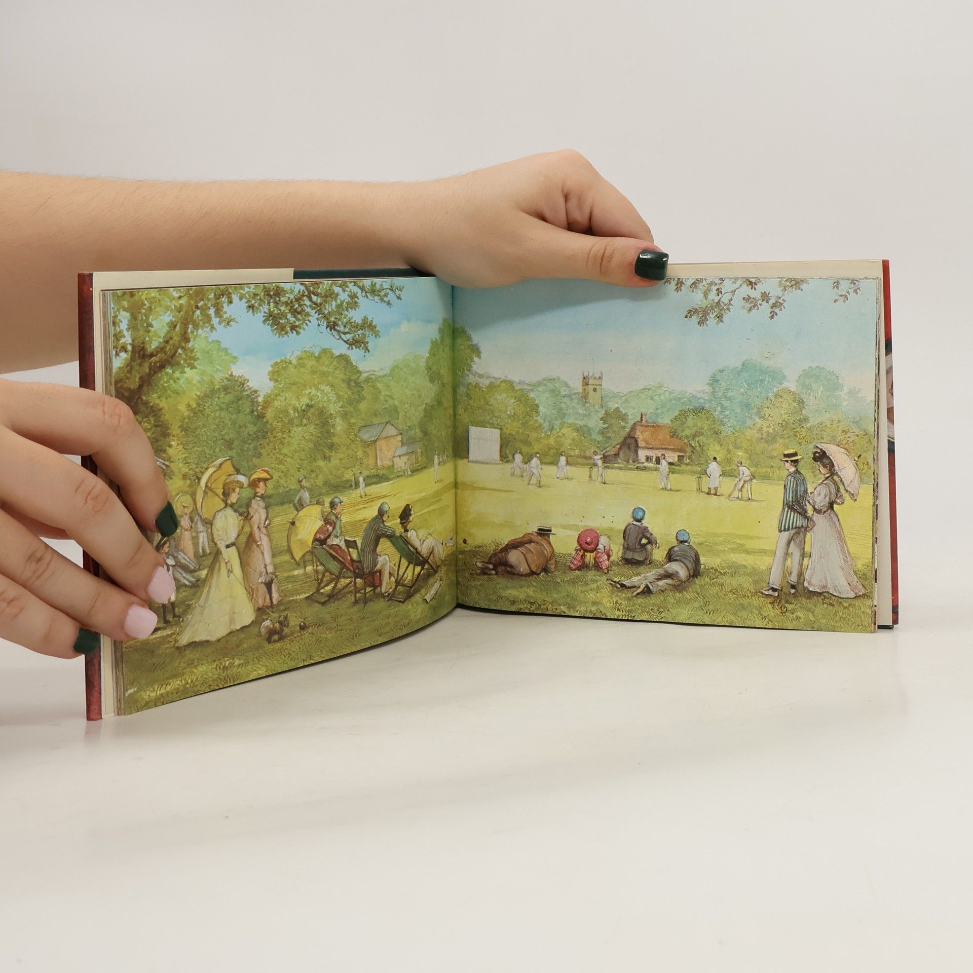 Illustrations without text depict everyday life in an English village during the Edwardian era.
