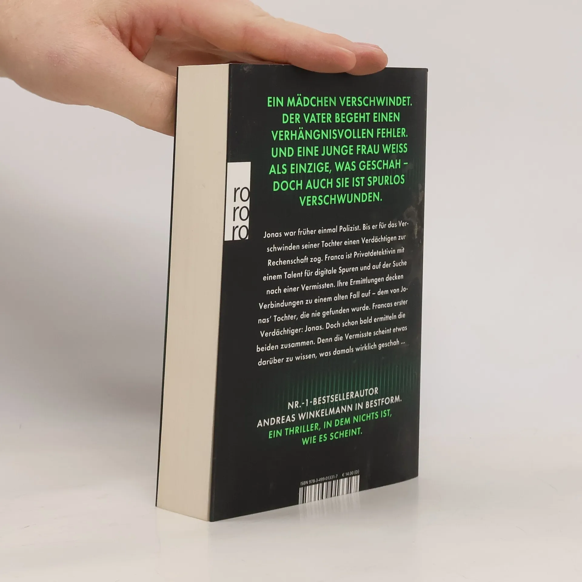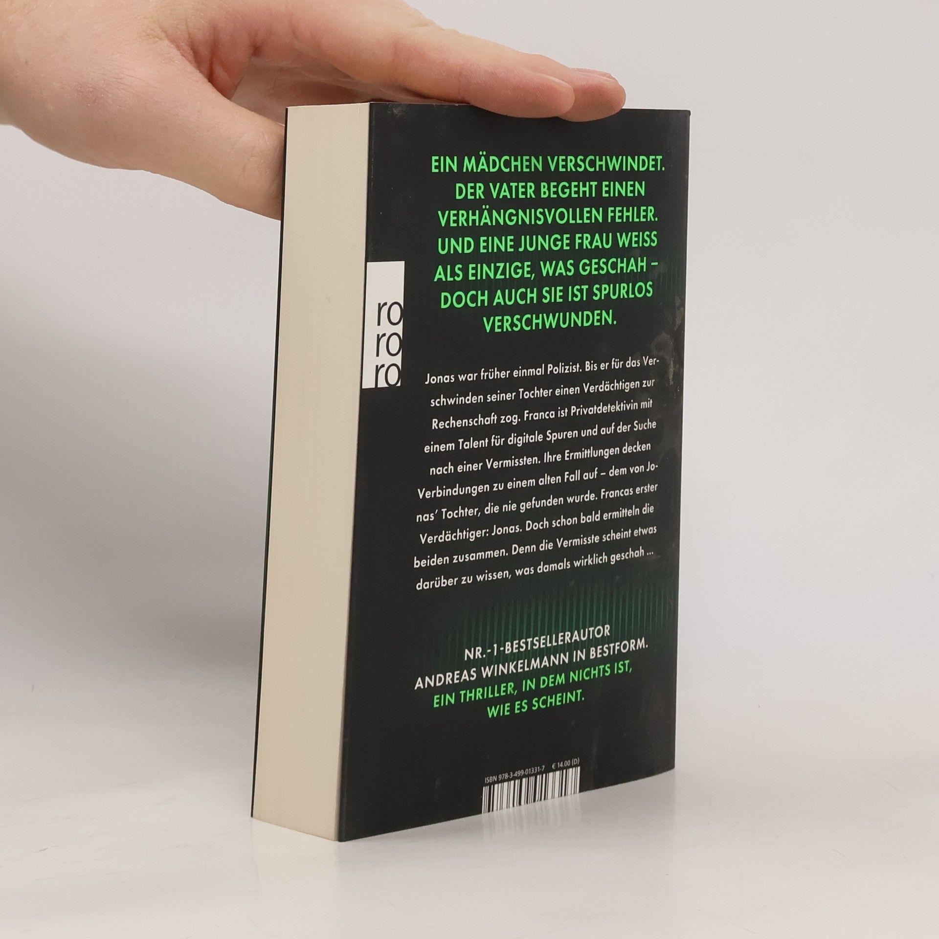 Der neue Standalone-Psychothriller von Nr.-1-Bestsellerautor Andreas Winkelmann: Ein Mädchen verschwindet. Der Vater begeht einen verhängnisvollen Fehler. Und eine junge Frau weiß als Einzige, was damals geschah – doch auch sie ist spurlos verschwunden. Jonas war früher einmal Polizist. Bis er für das Verschwinden seiner Tochter einen Verdächtigen zur Rechenschaft zog. Franka ist Privatdetektivin mit einem Talent für digitale Spuren und auf der Suche nach einer Vermissten. Ihre Ermittlungen decken Verbindungen zu einem alten Fall auf – dem von Jonas’ Tochter, die nie gefunden wurde. Frankas erster Verdächtiger: Jonas. Doch schon bald ermitteln die beiden zusammen. Denn die Vermisste scheint etwas darüber zu wissen, was damals wirklich geschah ...