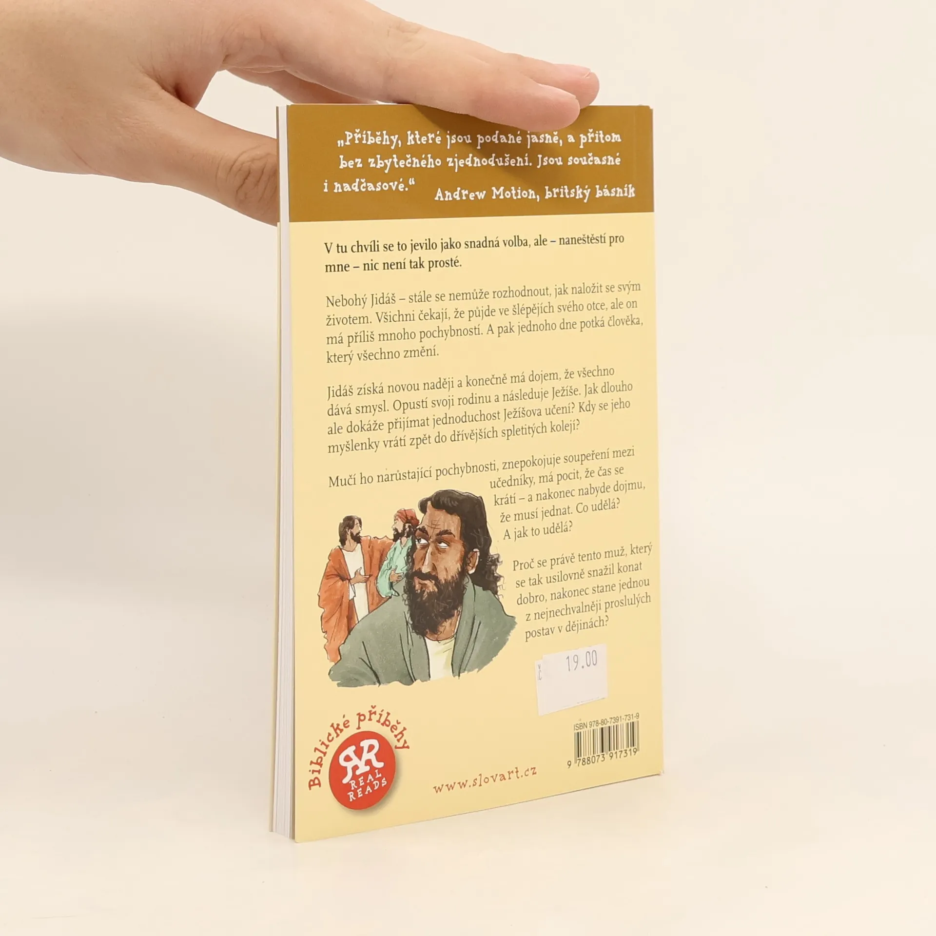 Ilustrovaný příběh pro děti s otázkami na přemýšlení popřípadě i skupinové aktivity. Nebohý Jidáš - stále se nemůže rozhodnout, jak naložit se svým životem. Všichni čekají, že půjde ve šlépějích svého otce, ale on má příliš mnoho pochybností. A pak jednoho dne potká člověka, který všechno změní. Jidáš získá novou naději a konečně má dojem, že všechno dává smysl. Opustí svoji rodinu a následuje Ježíše. Jak dlouho ale dokáže přijímat jednoduchost Ježíšova učení? Kdy se jeho myšlenky vrátí zpět do dřívějších spletitých kolejí? Mučí ho narůstající pochybnosti, znepokojuje soupeření mezi učedníky,má pocit, že čas se krátí - a nakonec nabyde dojmu, že musí jednat. Co udělá? A jak to udělá? Proč se právě tento muž, který se tak usilovně snažil konat dobro, nakonec stane jednou z nejnechvalněji proslulých postav v dějinách?