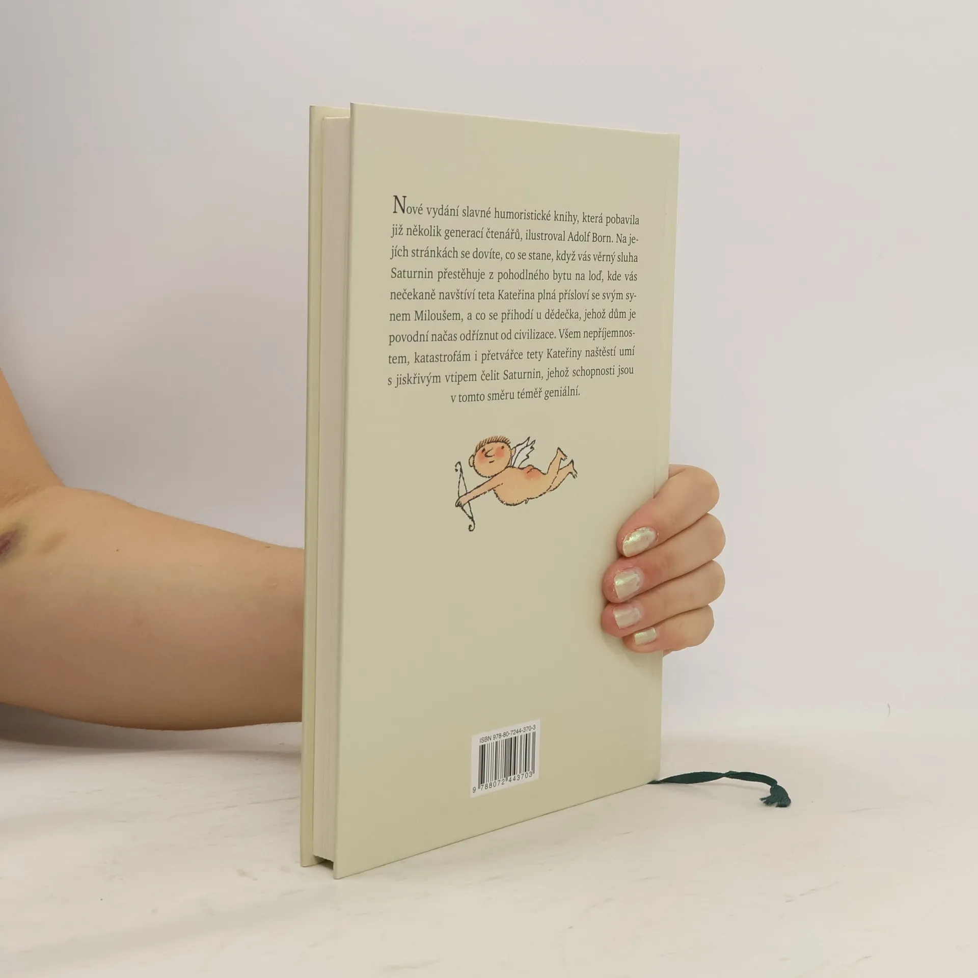 Nové vydání slavné humoristické knihy, která pobavila již několik generací čtenářů, je podle ankety Kniha mého srdce vítězem u českých čtenářů, tentokrát doplnil barevnými ilustracemi Adolf Born. Na jejích stránkách se dovíte, co se stane, když vás věrný sluha Saturnin přestěhuje z pohodlného bytu na loď, kde vás navštíví se svým synem Miloušem teta Kateřina, která omračuje spoustou přísloví a ráda by se znovu provdala, a co se přihodí u dědečka, jehož dům je povodní načas odříznut od civilizace. Všem nepříjemnostem, katastrofám i přetvářce tety Kateřiny naštěstí umí s jiskřivým vtipem čelit Saturnin. Jeho schopnosti jsou téměř geniální, a přitom je to tak prosté, jak píše o Saturninovi v dopise dědeček: „V bláznivých nápadech toho chlapíka je kus poezie, jeho humor, fantazie a podivuhodné myšlenkové přemety dovedou udělat detektivku z jízdního řádu a člověk cítí, že nemusil tak zestárnout, kdyby si byl nezapomněl hrát.“