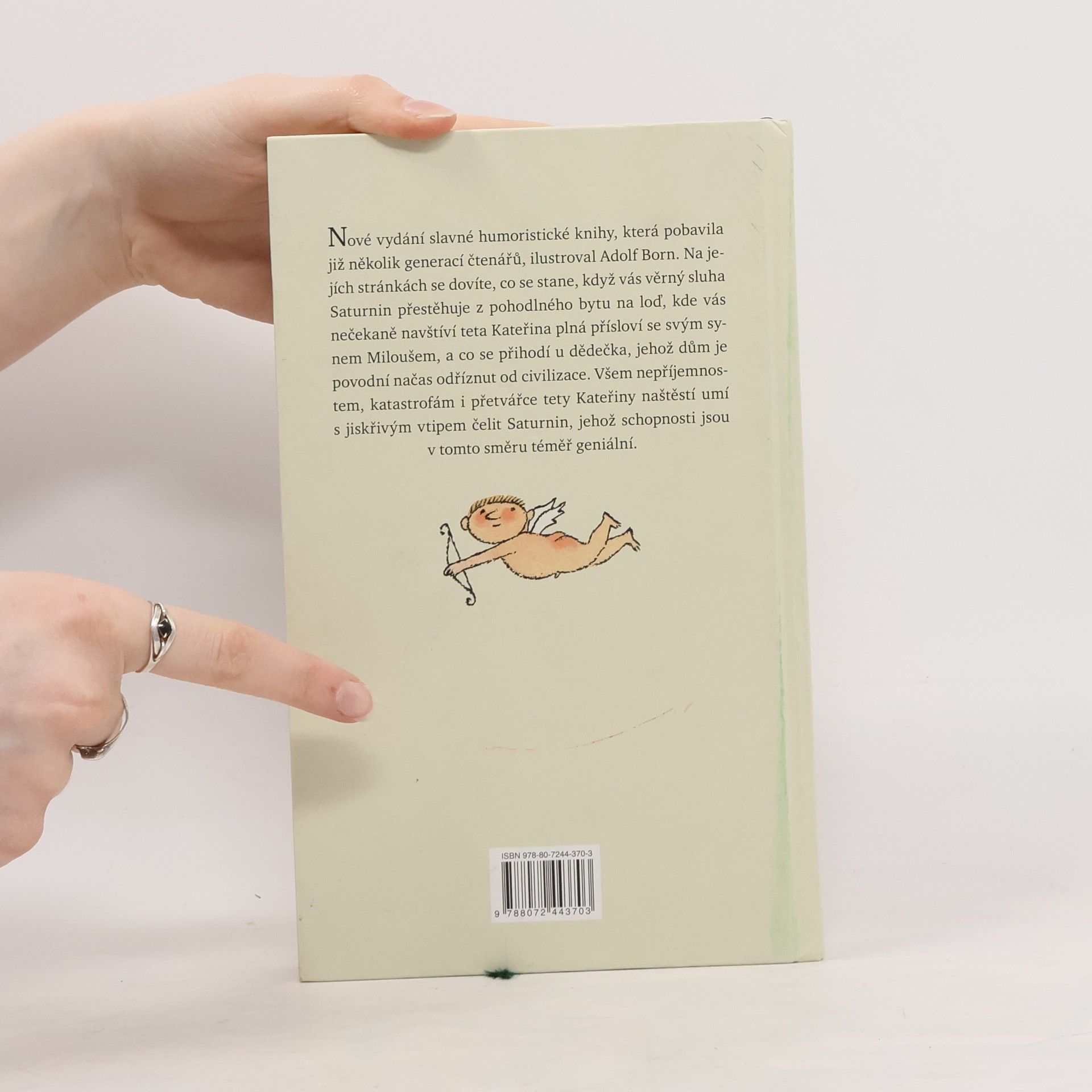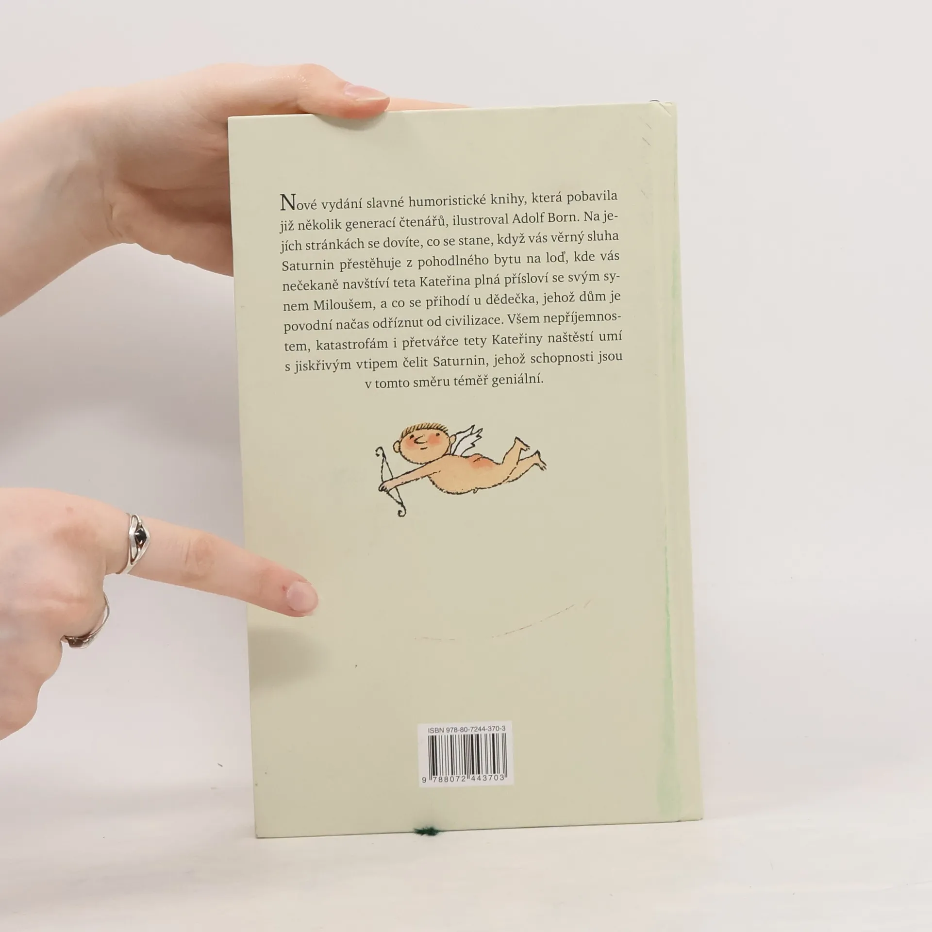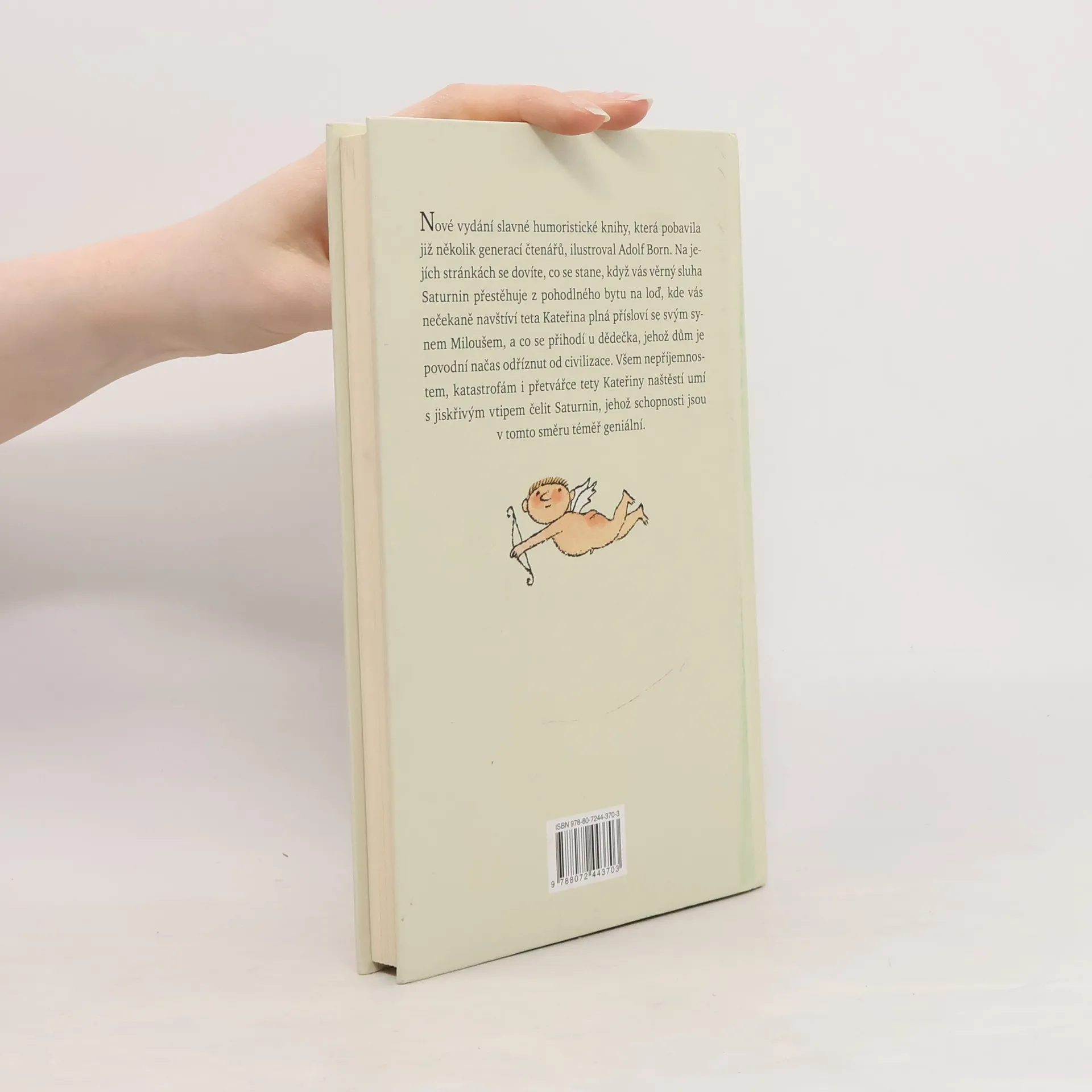 Nové vydání slavné humoristické knihy, která pobavila již několik generací čtenářů, je podle ankety Kniha mého srdce vítězem u českých čtenářů, tentokrát doplnil barevnými ilustracemi Adolf Born. Na jejích stránkách se dovíte, co se stane, když vás věrný sluha Saturnin přestěhuje z pohodlného bytu na loď, kde vás navštíví se svým synem Miloušem teta Kateřina, která omračuje spoustou přísloví a ráda by se znovu provdala, a co se přihodí u dědečka, jehož dům je povodní načas odříznut od civilizace. Všem nepříjemnostem, katastrofám i přetvářce tety Kateřiny naštěstí umí s jiskřivým vtipem čelit Saturnin. Jeho schopnosti jsou téměř geniální, a přitom je to tak prosté, jak píše o Saturninovi v dopise dědeček: „V bláznivých nápadech toho chlapíka je kus poezie, jeho humor, fantazie a podivuhodné myšlenkové přemety dovedou udělat detektivku z jízdního řádu a člověk cítí, že nemusil tak zestárnout, kdyby si byl nezapomněl hrát.“