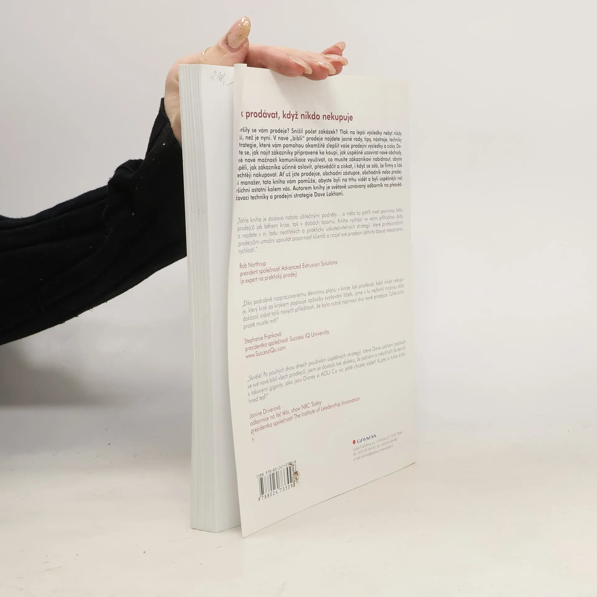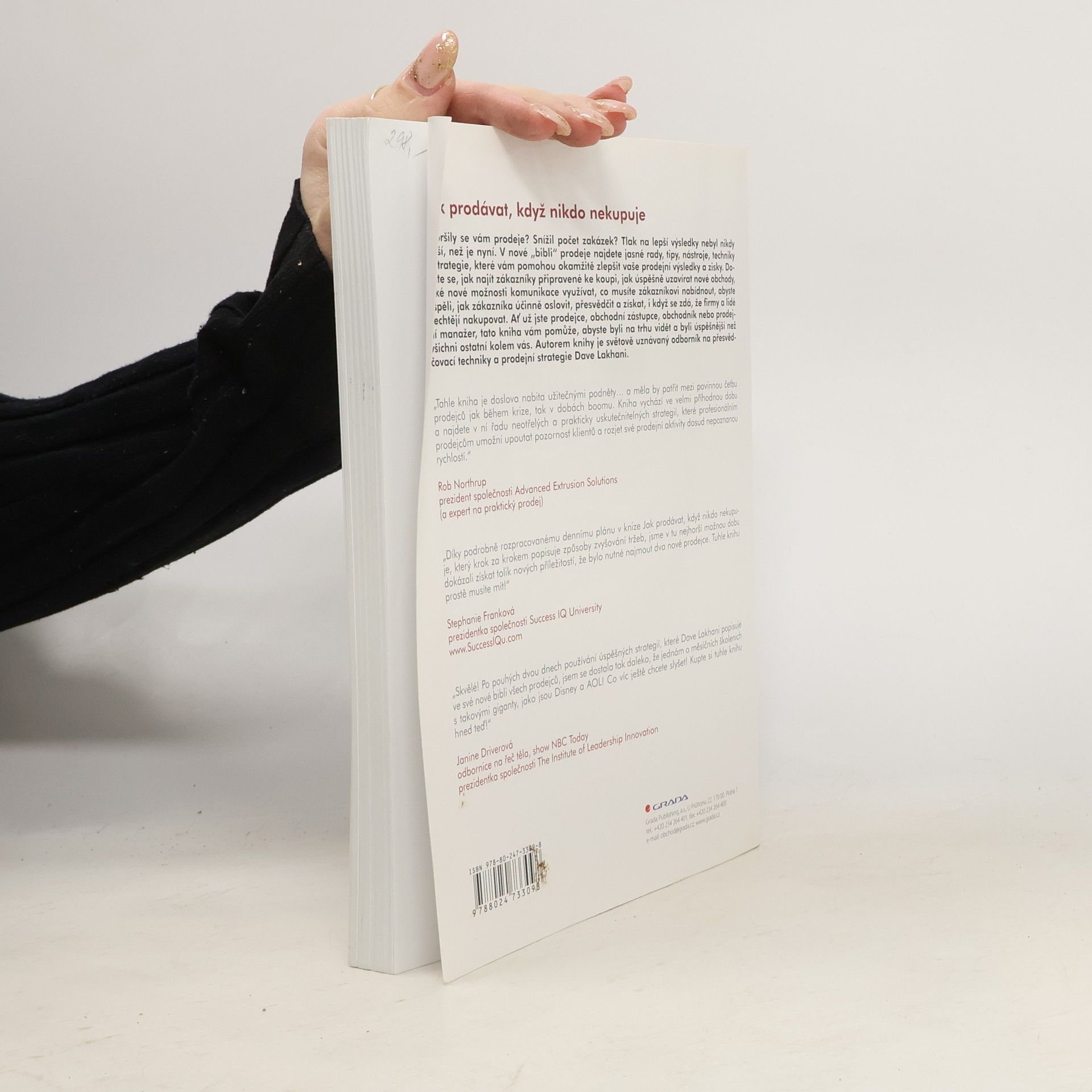 Zhoršily se vám prodeje? Snížil počet zakázek? Tlak na lepší výsledky nebyl nikdy větší, než je nyní. V nové "bibli" prodeje najdete jasné rady, tipy, nástroje, techniky a strategie, které vám pomohou okamžitě zlepšit vaše prodejní výsledky a zisky. Dozvíte se, jak najít zákazníky připravené ke koupi, jak úspěšně uzavírat nové obchody, jaké nové možnosti komunikace využívat, co musíte zákazníkovi nabídnout, abyste uspěli, jak zákazníka účinně oslovit, přesvědčit a získat, i když se zdá, že firmy a lidé nechtějí nakupovat. Ať už jste prodejce, obchodní zástupce, obchodník nebo prodejní manažer, tato kniha vám pomůže, abyste byli na trhu vidět a byli úspěšnější než všichni ostatní kolem vás. Autorem knihy je světově uznávaný odborník na přesvědčovací techniky a prodejní strategie Dave Lakhani.