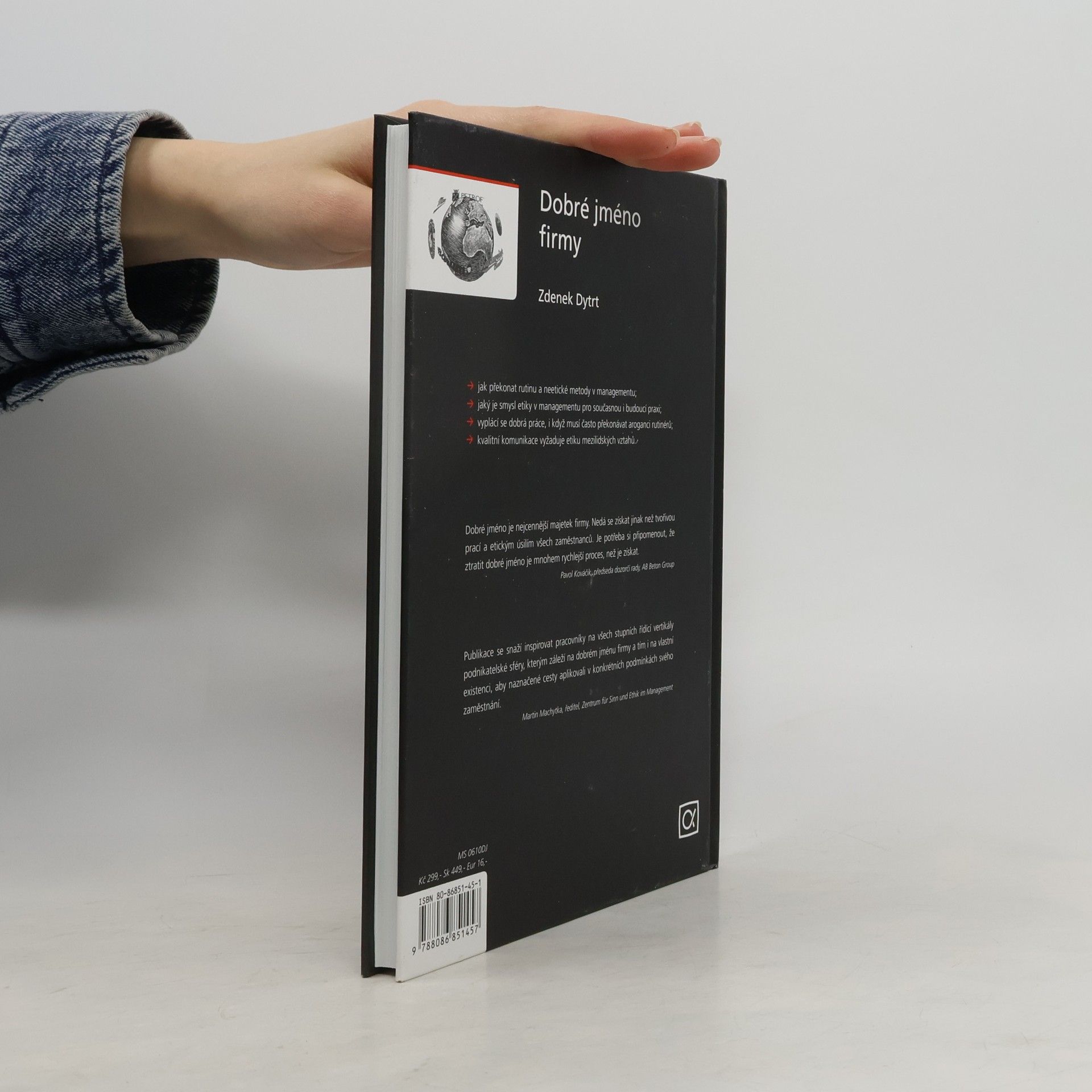 Publikace se snaží inspirovat pracovníky na všech stupních řídící vertikály podnikatelské sféry, kterým záleží na dobrém jménu firmy a tím i na vlastní existenci, aby naznačené cesty aplikovali v konkrétních podmínkách svého zaměstnání. Dobré jméno je nejcennější majetek firmy. Nedá se získat jinak než tvořivou prací a etickým úsilím všech zaměstnanců. A je potřeba si připomenout, že ztratit dobré jméno je mnohem rychlejší proces, než je získat. - jak překonat rutinu a neetické metody v managementu; - jaký je smysl etiky v managementu pro současnou i budoucí praxi; - vyplácí se dobrá práce, i když musí často překonávat aroganci rutinérů; - kvalitní komunikace vyžaduje etiku mezilidských vztahů.