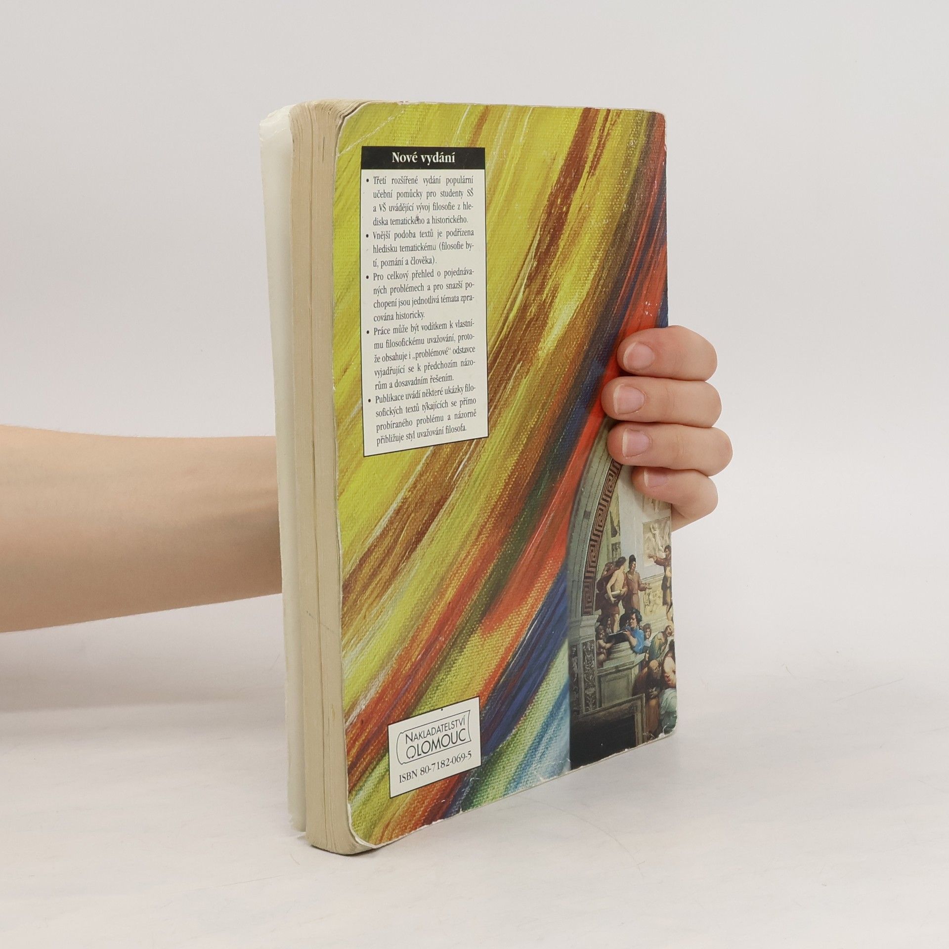 Populární učební pomůcka pro studenty SŠ a VŠ uvádějící vývoj filosofie z hlediska tematického a historického. Vnější podoba textů je podřízena hledisku tematickému (filosofie bytí, poznání a člověka). Pro celkový přehled o pojednávaných problémech a pro snazší pochopení jsou jednotlivá témata zpracována historicky. Práce může být i vodítkem k vlastnímu filosofickému uvažování čtenářů, protože obsahuje i „problémové“ odstavce vyjadřující se k předchozím názorům a dosavadním řešením. Publikace uvádí některé ukázky filosofických textů (v příloze Malá čítanka filosofických textů) týkající se přímo probíraného problému a názorně přibližuje styl uvažování daného filosofa.