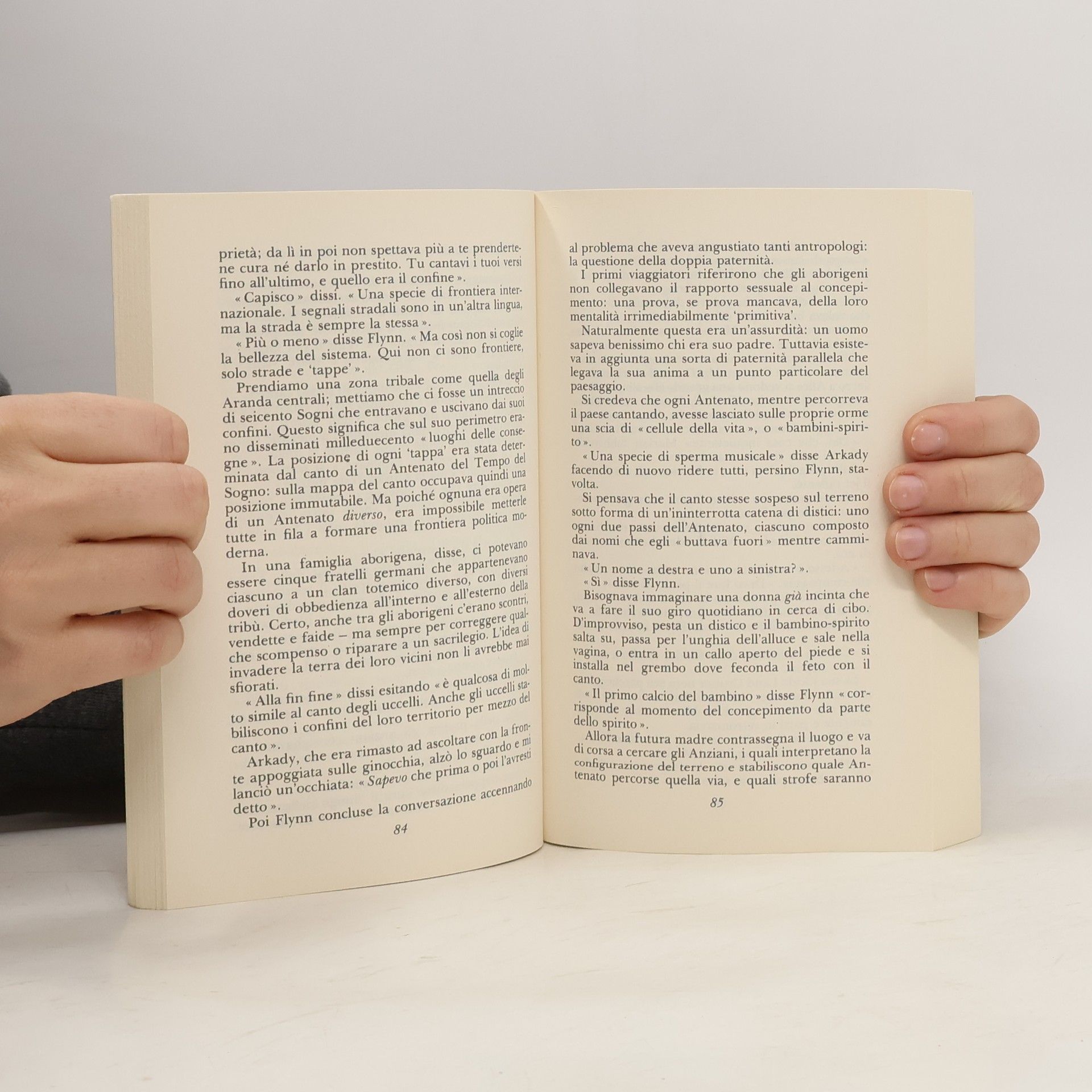 Per gli aborigeni australiani, la loro terra era tutta segnata da un intrecciarsi di «Vie dei Canti» o «Piste del Sogno», un labirinto di percorsi visibili soltanto ai loro occhi: erano quelle le «Impronte degli Antenati» o la «Via della Legge». Dietro questo fenomeno, che apparve subito enigmatico agli antropologi occidentali, si cela una vera metafisica del nomadismo. Questo ultimo libro di Bruce Chatwin, subito accolto con entusiasmo di critica e lettori quando è apparso, nel 1987, potrebbe essere descritto anch’esso come una «Via dei Canti»: romanzo, viaggio, indagine sulle cose ultime. È un romanzo, in quanto racconta incontri e avventure picaresche nel profondo dell’Australia. Ed è un percorso di idee, una musica di idee che muove tutta da un interrogativo: perché l’uomo, fin dalle origini, ha sentito un impulso irresistibile a spostarsi, a migrare? E poi: perché i popoli nomadi tendono a considerare il mondo come perfetto, mentre i sedentari tentano incessantemente di mutarlo? Per provare a rispondere a queste domande occorre smuovere ogni angolo dei nostri pensieri. Chatwin è riuscito a farlo, attirandoci in una narrazione dove i personaggi, i miti, le idee compongono un itinerario che ci guida molto lontano.
