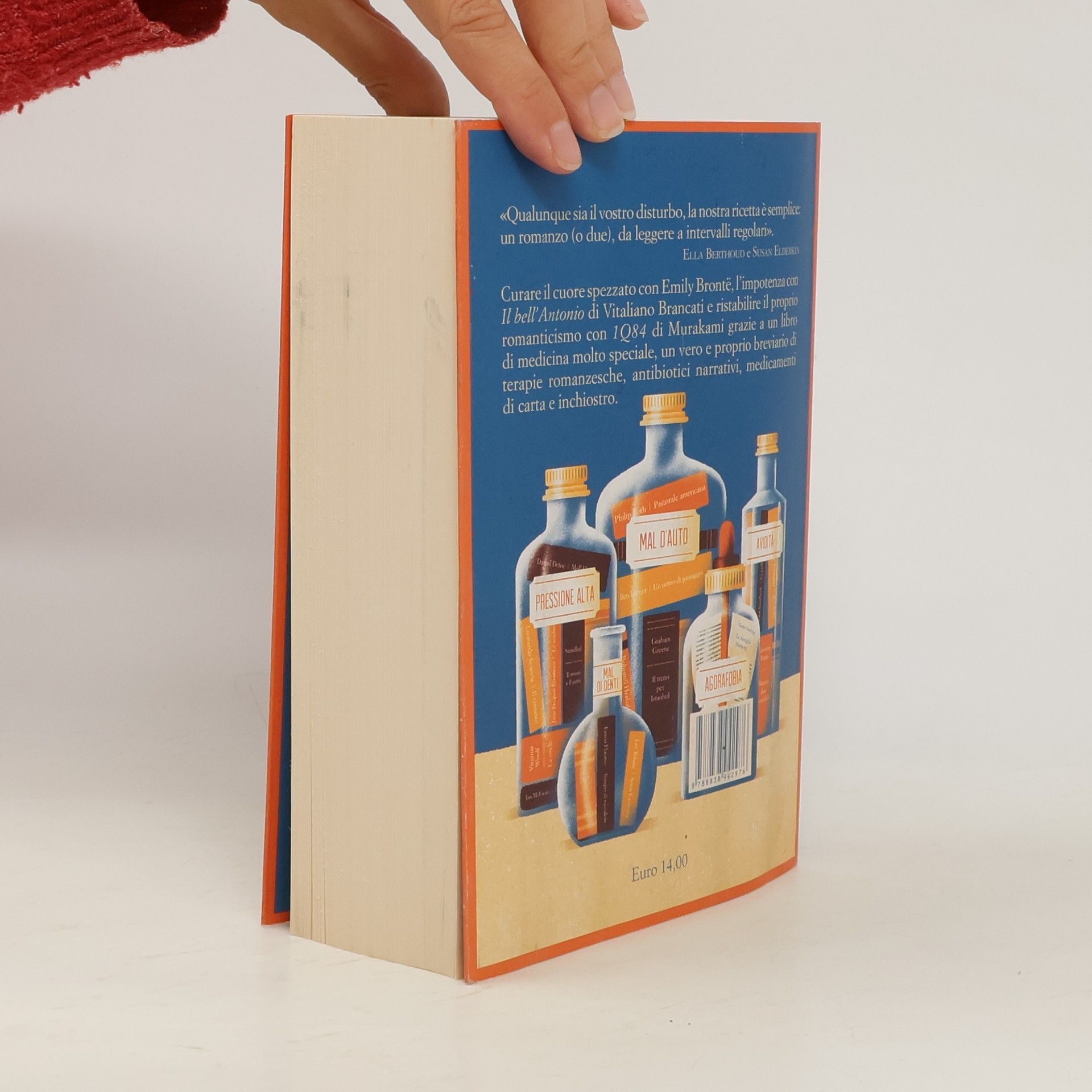 Si può curare il cuore spezzato con Emily Brontë e il mal d’amore con Fenoglio, l’arroganza con Jane Austen e il mal di testa con Hemingway, l’impotenza con Il bell’Antonio di Vitaliano Brancati, i reumatismi con il Marcovaldo di Italo Calvino, o invece ci si può concedere un massaggio con Murakami e scoprire il romanzo perfetto per alleviare la solitudine o un forte tonico letterario per rinvigorire lo spirito. Questo suggeriscono le ricette di un libro di medicina molto speciale, un vero e proprio breviario di terapie romanzesche, antibiotici narrativi, medicamenti di carta e inchiostro, ideato e scritto da due argute e coltissime autrici inglesi e adattato per l’Italia da Fabio Stassi, autore de L’ultimo ballo di Charlot. Se letto nel momento giusto un romanzo può davvero cambiarci la vita, e questo prontuario è una celebrazione del potere curativo della letteratura di ogni tempo e paese, dai classici ai contemporanei, dai romanzi famosissimi ai libri più rari e di culto, di ogni genere e ambizione. Queste ricette per l’anima e il corpo, scritte con passione, autorevolezza ed elegante umorismo, propongono un libro e un autore a rimedio di ogni nostro malanno, che si tratti di raffreddore o influenza, di un dito del piede annerito da un calcio maldestro o di un severo caso di malinconia. Le prescrizioni raccontano le vicende e i personaggi di innumerevoli opere, svelano aneddoti, tratteggiano biografie di scrittori illustri e misconosciuti, in un invito ad amare la letteratura che ha la convinzione di poter curare con efficacia ogni nostro acciacco. Non mancano consigli per guarire le idiosincrasie tipiche della lettura, come il sentirsi sopraffatti dal numero infinito di volumi che ci opprimono da ogni scaffale e libreria, o il vizio apparentemente insanabile di lasciare un romanzo a metà.