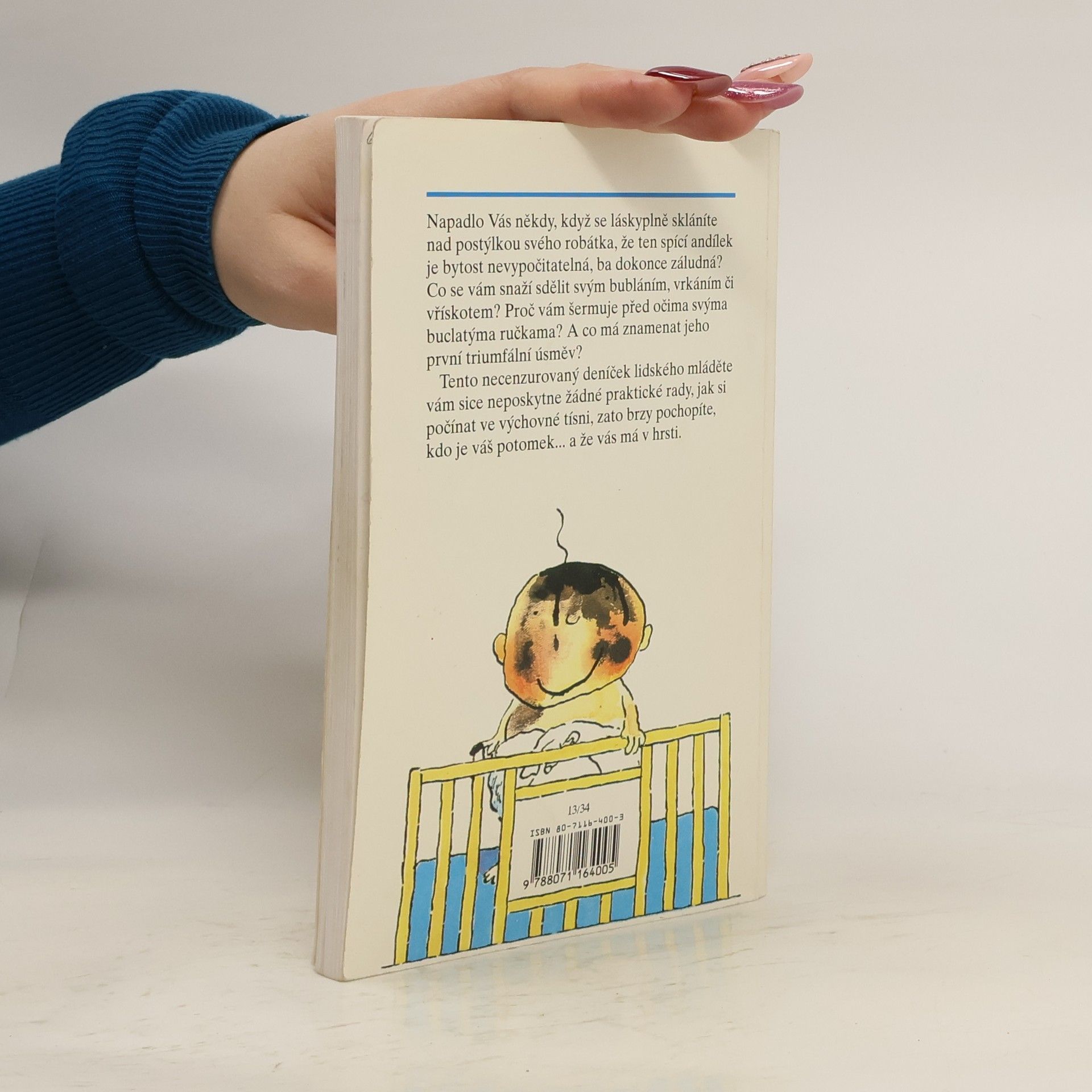 Napadlo Vás někdy, když se láskyplně skláníte nad postýlkou svého robátka, že ten spící andílek je bytost nevypočitatelná, ba dokonce záludná? Co se vám snaží sdělit svým bubláním, vrkáním či vřískotem? Proč vám šermuje před očima svýma buclatýma ručkama? A co má znamenat jeho první triumfální úsměv? Tento necenzurovaný deníček lidského mláděte vám sice neposkytne žádné praktické rady, jak si počínat ve výchovné tísni, zato brzy pochopíte, kdo je váš potomek... a že vás má v hrsti.