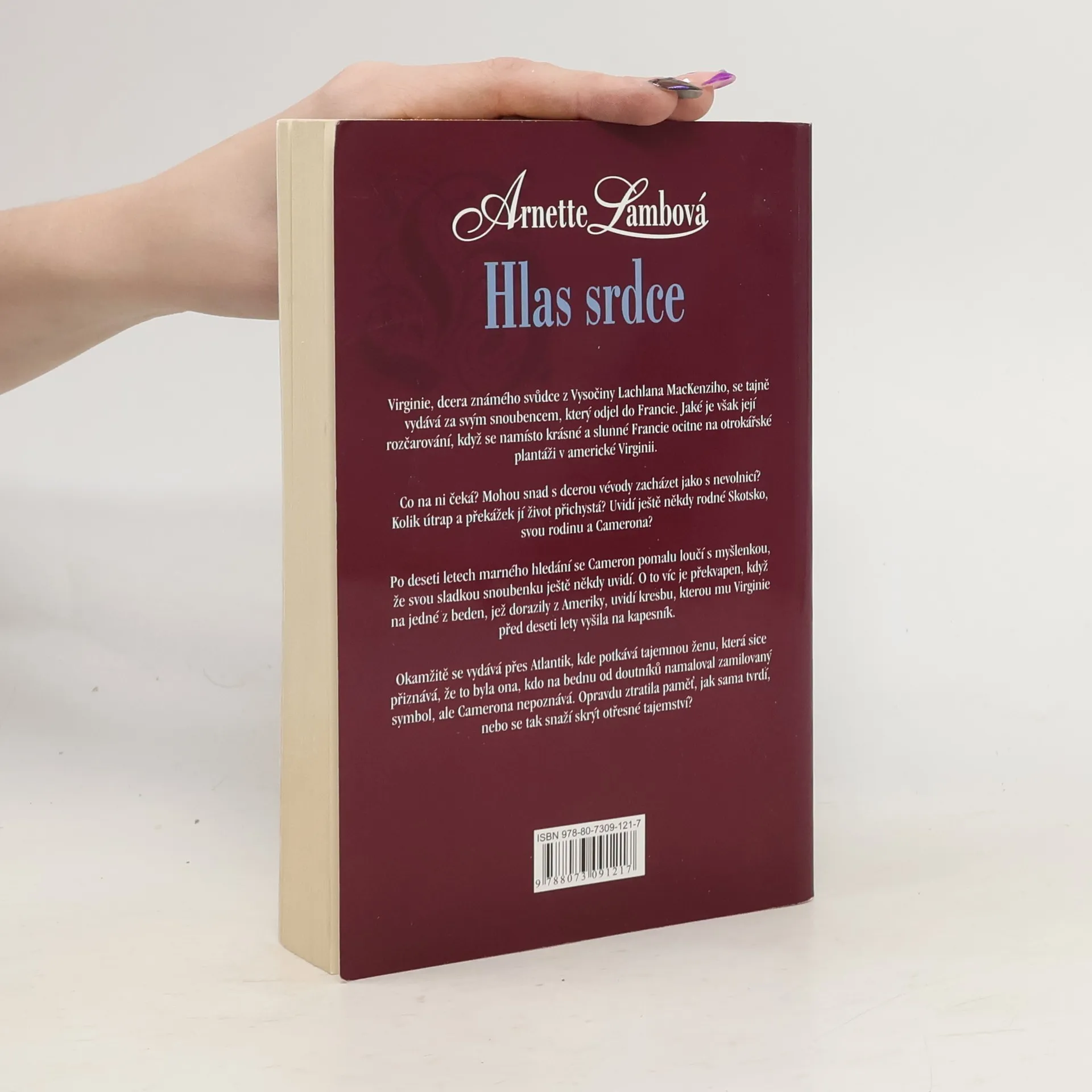 Rok 1789. Virginie, dcera známého svůdce z Vysočiny Lachlana MacKenziho, se tajně vydává za svým snoubencem, který odjel do Francie. Jaké je však její rozčarování, když se namísto krásné a slunné Francie ocitne na otrokářské plantáži v americké Virginii. Co na ni čeká? Mohou snad s dcerou vévody zacházet jako s nevolnicí? Kolik útrap a překážek jí život přichystá? Uvidí ještě někdy rodné Skotsko, svou rodinu a Camerona? Přežije nelidské zacházení svých pánů? Po deseti letech marného hledání se Cameron pomalu loučí s myšlenkou, že svou sladkou snoubenku ještě někdy uvidí. O to víc je překvapen, když na jedné z beden, jež dorazily z Ameriky, uvidí kresbu, kterou mu Virginie před deseti lety vyšila na kapesník. Okamžitě se vydává přes Atlantik, kde potkává tajemnou ženu, která sice přiznává, že to byla ona, kdo na bednu od doutníků namaloval zamilovaný symbol, ale Camerona nepoznává. Opravdu ztratila paměť, jak sama tvrdí, nebo se tak snaží skrýt otřesné tajemství?