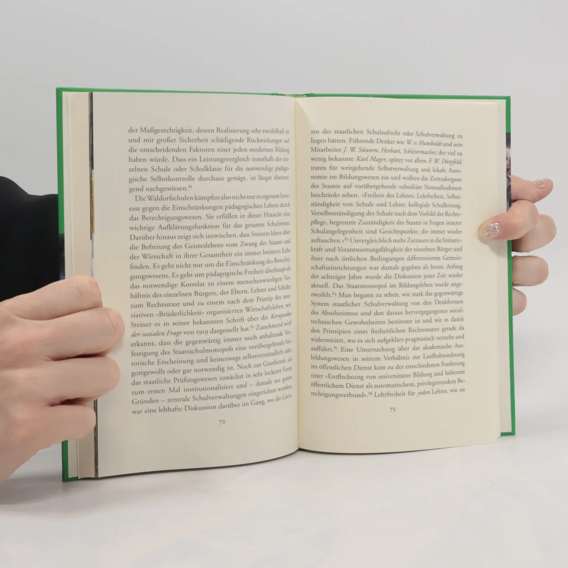 Inhaltsverzeichnis· Die anthroposophischen Grundlagen · Erziehen als Kunst · Unterricht nach dem Waldorf-Lehrplan · Von der Schulorganisation · Zur Lehrerbildung · Waldorfpädagogik im Gespräch · Waldorfpädagogik und Staatsschule · Weiterführende Literatur