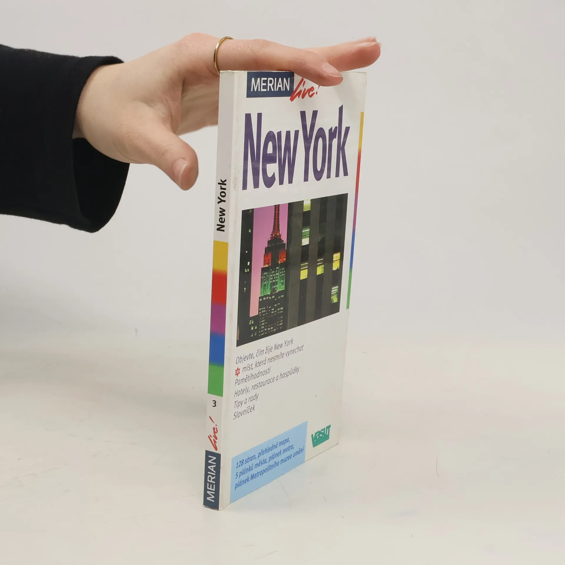 Průvodce seznamuje ve stručnosti s nejznámějšími turistickými atraktivitami jednoho z největších světových měst. Česká mutace vybraných svazků ediční řady německého vydavatelství Merian přibližuje čtenářům ve stručnosti místa, která by při své návštěvě New Yorku rozhodně něeměli vynechat. Podstatnou část příručky tvoří informace o možnostech stravování, nákupů, kulturního vyžití (koncerty, divadlo, show...), nabídkách akcí pro děti apod. Množství barevných fotografií, doplňkové mapky.