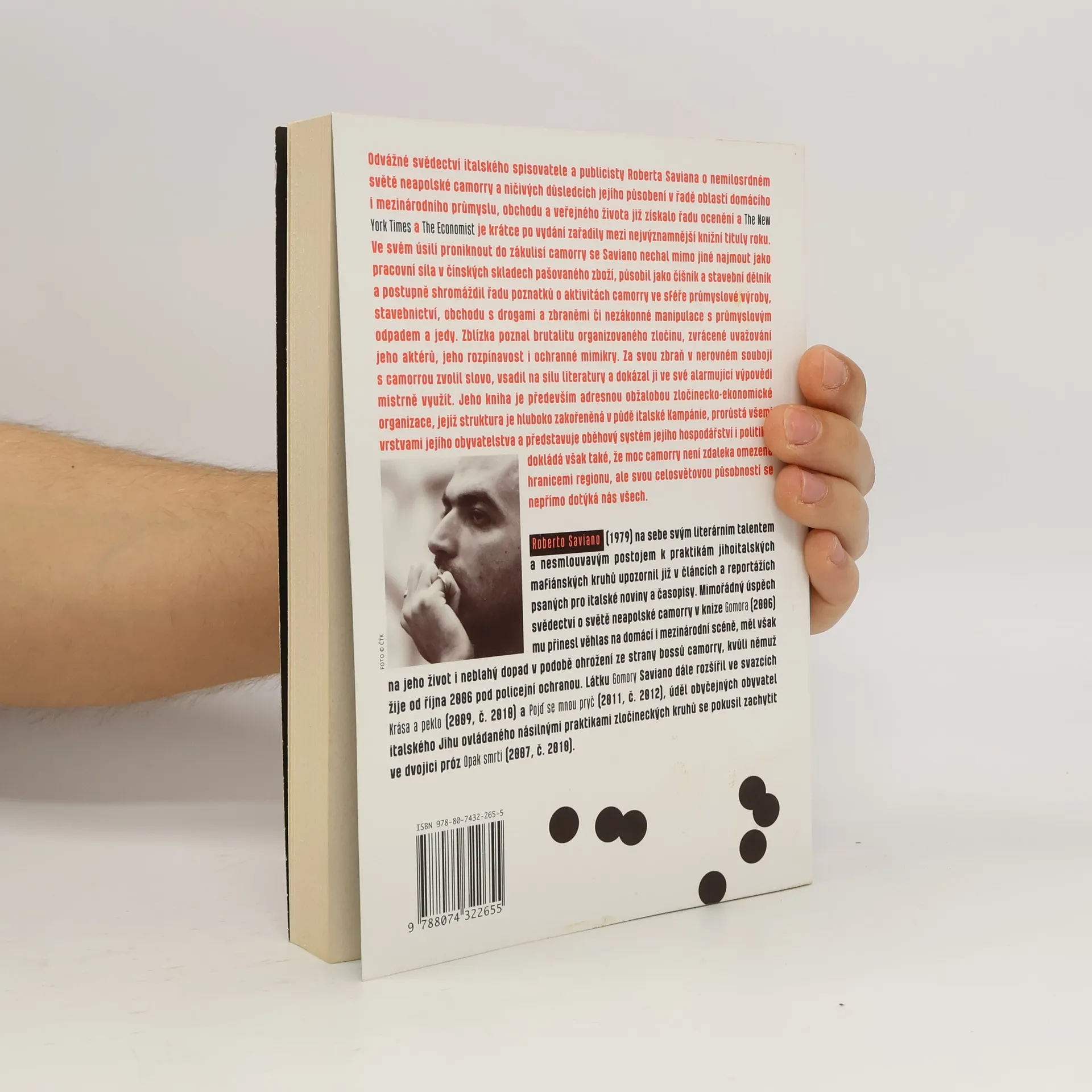 Odvážné svědectví sedmadvacetiletého italského novináře o nemilosrdném světě současné neapolské mafie a ničivých důsledcích jejího působení v řadě oblastí domácího i mezinárodního průmyslu, obchodu a veřejného života zaujme zasvěceným a detailním vylíčením brutálních praktik organizovaného zločinu a portréty jeho aktérů, ale i bezprecedentním osobním nasazením a statečností svého autora. Ve svém úsilí proniknout do zákulisí působení camorry se Saviano mimo jiné nechal najmout jako pracovní síla nelegální čínské textilní dílny, působil jako stavební dělník a číšník a postupně shromáždil řadu poznatků o aktivitách mafiánských kruhů ve sféře průmyslu, stavebnictví, obchodu s drogami či nezákonné manipulace s průmyslovým odpadem a jedy. Jeho strhující i alarmující výpověď, obsahující řadu konkrétních údajů o špičkách klanů camorry a jimi řízených vraždách a dalších zločinech, se záhy po svém vydání v Itálii stala bestsellerem, vyvolala značný ohlas i v mezinárodním měřítku a v současnosti se překládá do osmnácti jazyků.