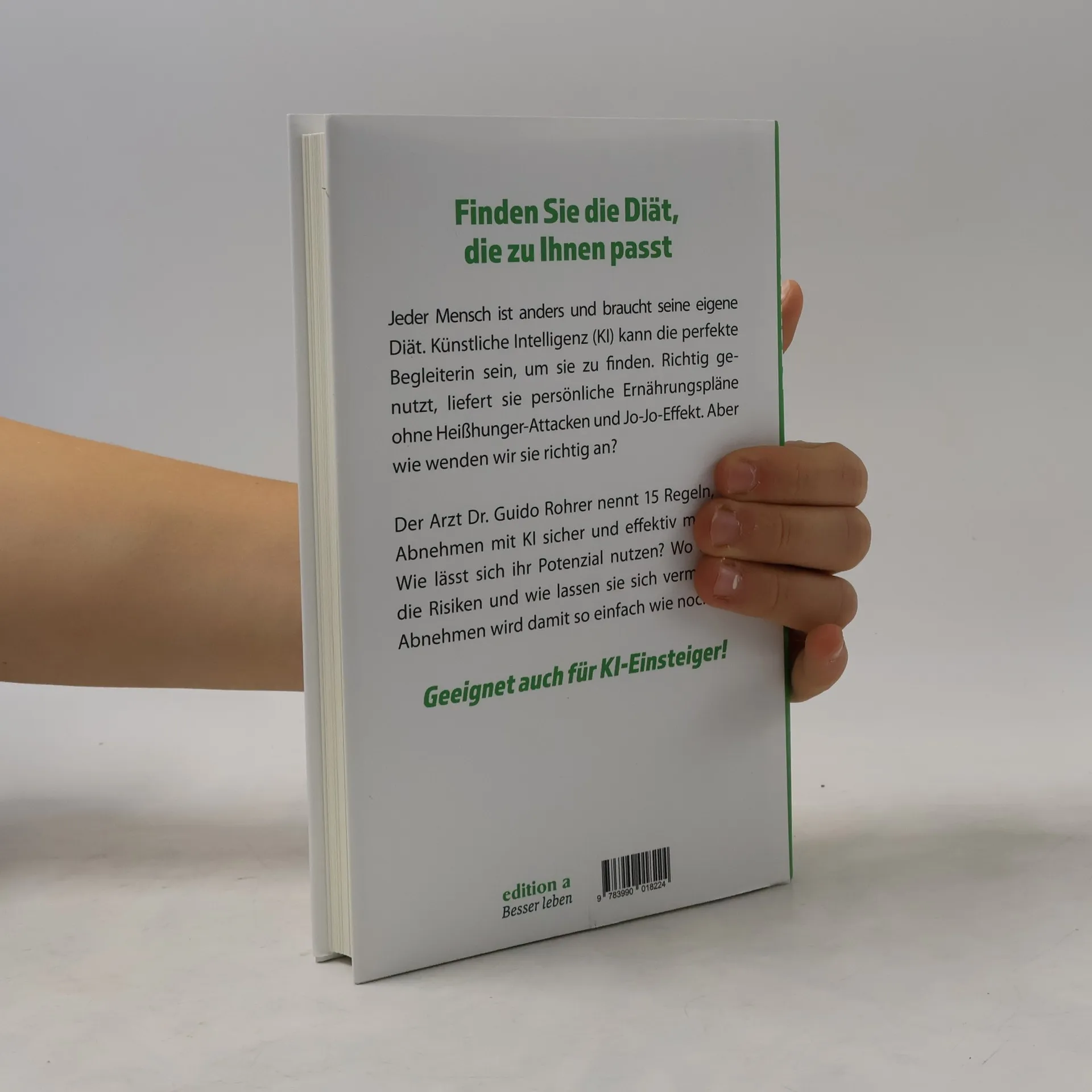 Jeder Mensch ist anders und braucht seine eigene Diät. Künstliche Intelligenz (KI) kann die perfekte Begleiterin sein, um sie zu finden. Richtig genutzt, liefert sie persönliche Ernährungspläne ohne Heißhunger-Attacken und Jo-Jo-Effekt. Aber wie wenden wir sie richtig an? Der Arzt Dr. Guido Rohrer nennt 15 Regeln, die Abnehmen mit KI sicher und effektiv machen. Wie lässt sich ihr Potenzial nutzen? Wo liegen die Risiken und wie lassen sie sich vermeiden? Abnehmen wird damit so einfach wie noch nie.