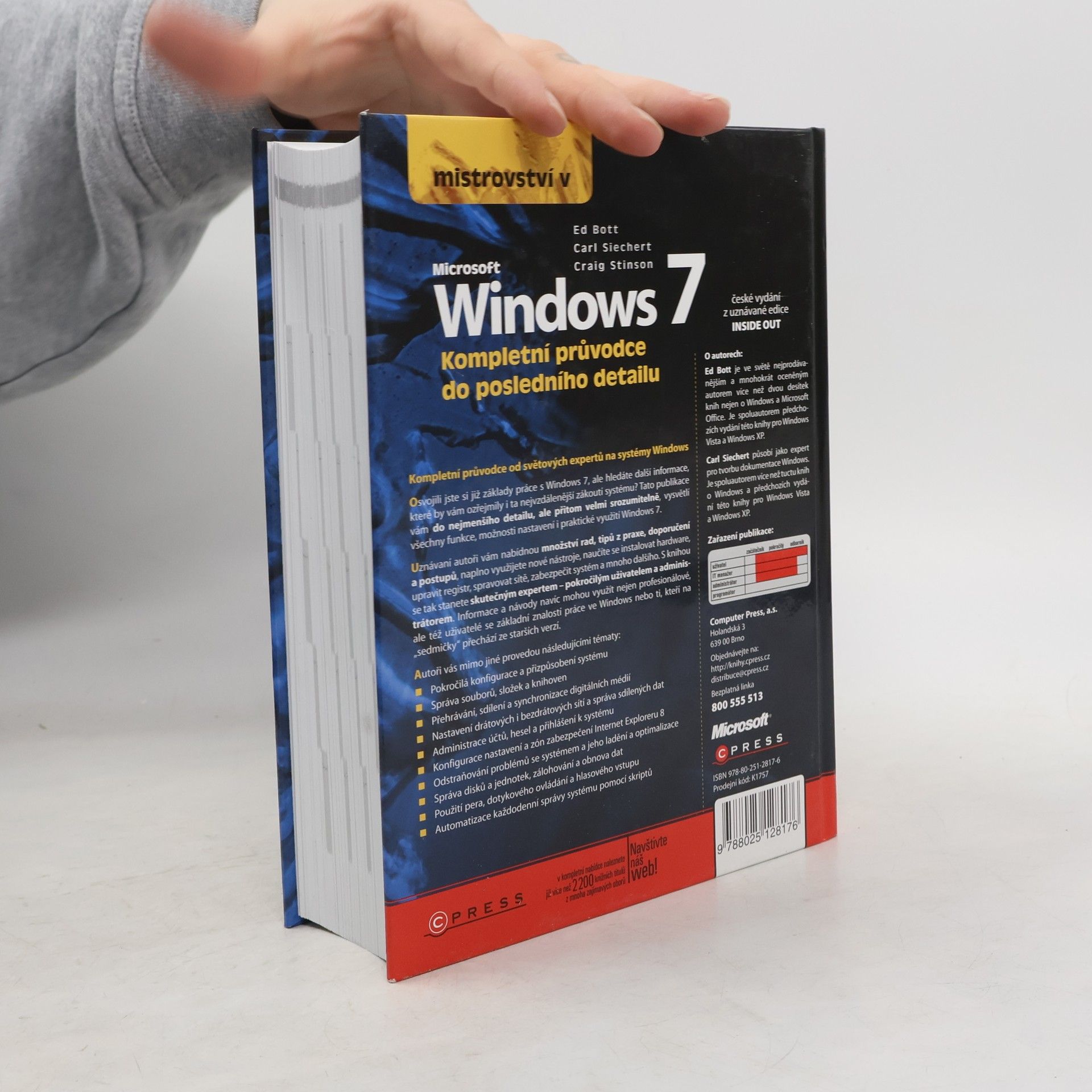 Osvojili jste si již základy práce s Windows 7, ale hledáte další informace, které by vám ozřejmily i ta nejvzdálenější zákoutí systému? Tato publikace vám do nejmenšího detailu, ale přitom velmi srozumitelně, vysvětlí všechny funkce, možnosti nastavení i praktické využití Windows 7. Uznávaní autoři vám nabídnou množství rad, tipů z praxe, doporučení a postupů, naplno využijete nové nástroje, naučíte se instalovat hardware, upravit registr, spravovat sítě, zabezpečit systém a mnoho dalšího. S knihou se tak stanete skutečným expertem – pokročilým uživatelem a administrátorem. Informace a návody navíc mohou využít nejen profesionálové, ale též uživatelé se základní znalostí práce ve Windows nebo ti, kteří na „sedmičky“ přechází ze starších verzí.