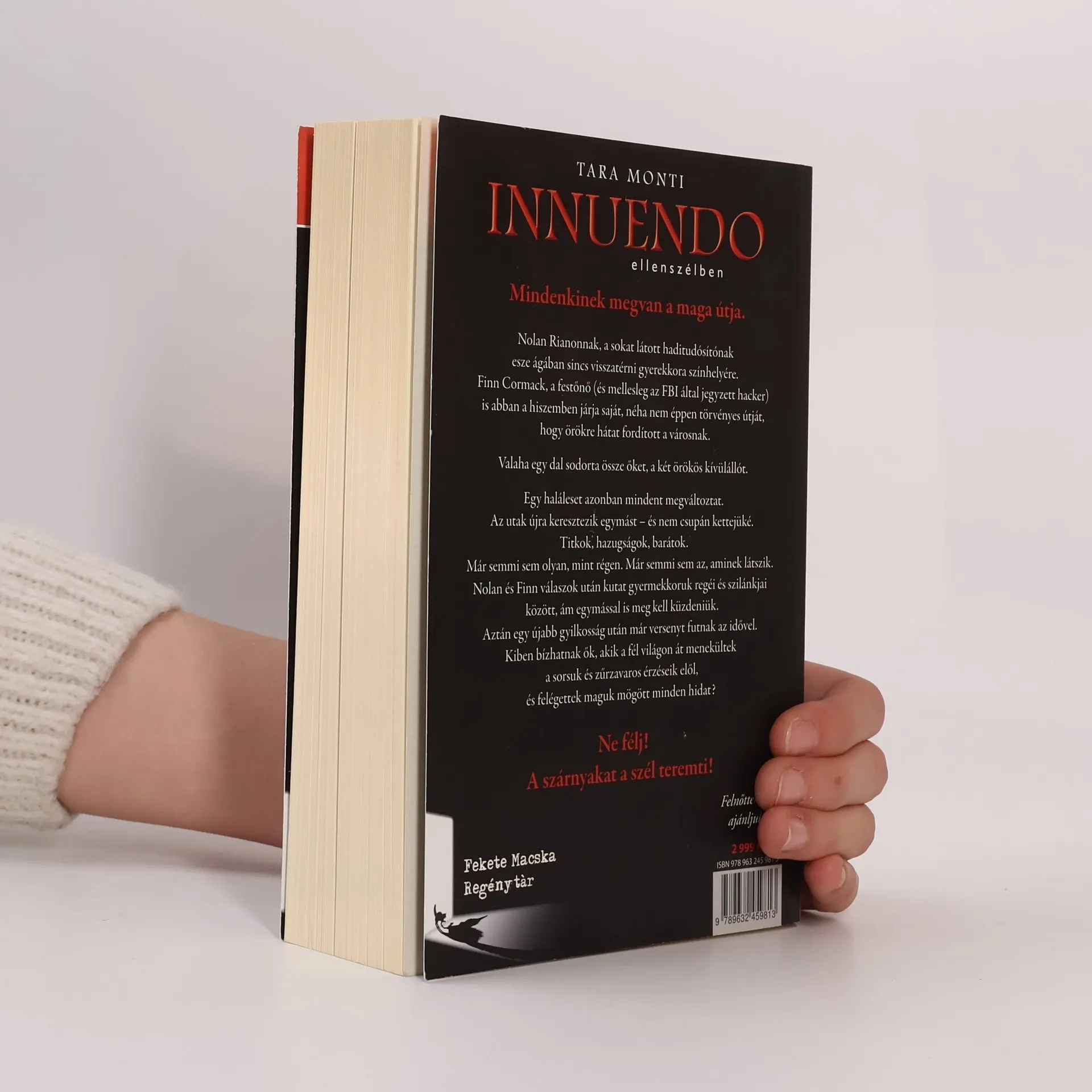 Mindenkinek megvan a maga útja.Nolan Rianonnak, a sokat látott haditudósítónak esze ágában sincs visszatérni gyerekkora színhelyére.Finn Cormack, a festőnő (és mellesleg az FBI által jegyzett hacker) is abban a hiszemben járja saját, néha nem éppen törvényes útját, hogy örökre hátat fordított a városnak.Valaha egy dal sodorta össze őket, a két örökös kívülállót.Egy haláleset azonban mindent megváltoztat. Az utak újra keresztezik egymást – és nem csupán kettejüké.Titkok, hazugságok, barátok. Már semmi sem olyan, mint régen. Már semmi sem az, aminek látszik.Nolan és Finn válaszok után kutat gyermekkoruk regéi és szilánkjai között, ám egymással is meg kell küzdeniük.Aztán egy újabb gyilkosság után már versenyt futnak az idővel. Kiben bízhatnak ők, akik a fél világon át menekültek a sorsuk és zűrzavaros érzéseik elől, és felégettek maguk mögött minden hidat?Ne félj! A szárnyakat a szél teremti!