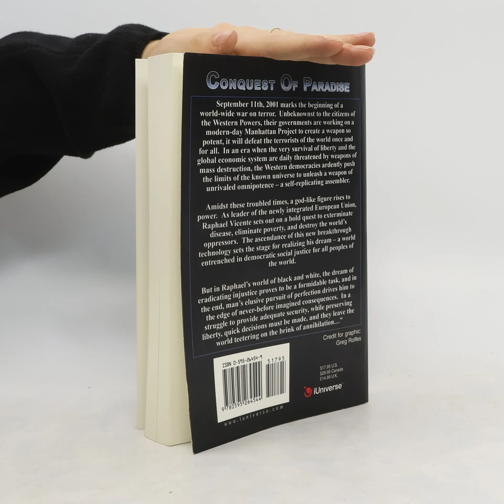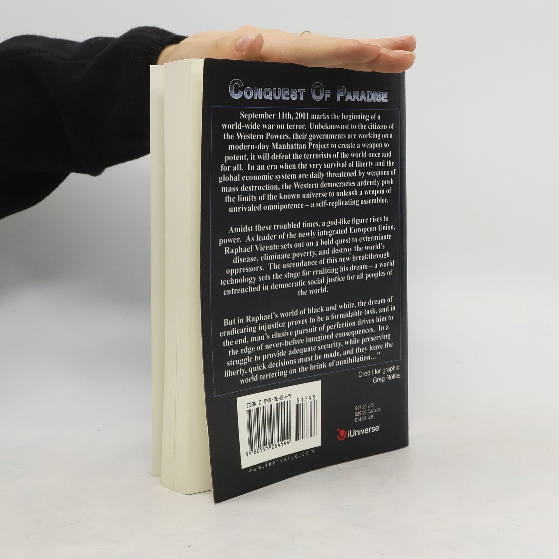 September 11th, 2001 marked the beginning of a world-wide war on terror. Unbeknownst to the citizens of the Western Powers, their governments are working on a modern-day Manhattan Project to create a weapon so potent, it will defeat the terrorists of the world once and for all. In an era when the very survival of liberty and the global economic system are daily threatened by weapons of mass destruction, the Western democracies ardently push the limits of the known universe to unleash a weapon of unrivaled a self-replicating assembler. Amidst these troubled times, a god-like figure rises to power. As leader of the newly created United Europe, Raphael Vicente sets out on a bold quest to exterminate disease, eliminate poverty, and destroy the world s oppressors. The ascendance of this breakthrough technology sets the stage for Raphael’s a world entrenched in democratic social justice for all peoples of the world. But in Raphael’s world of black and white, the dream of eradicating injustice proves to be a formidable task, and in the end, man’s elusive pursuit of perfection drives him to the edge of never-before imagined consequences. In a struggle to provide adequate security while preserving liberty, quick decisions must be made – decisions that leave the world teetering on the brink of annihilation.