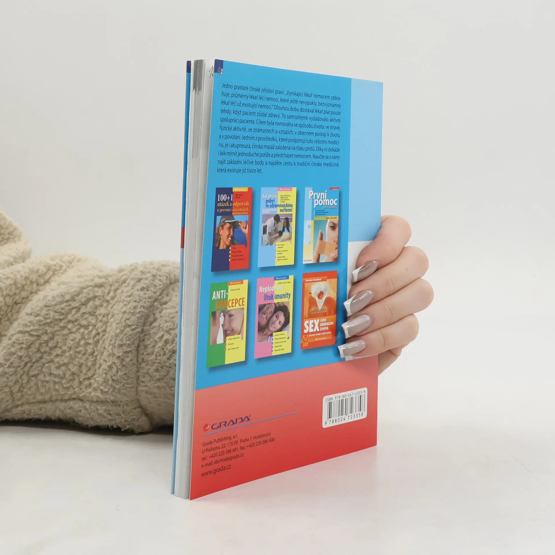 Jedno prastaré čínské přísloví praví: "Vynikající lékař nemocem zabraňuje, průměrný lékař léčí nemoci, které ještě nevypukly, bezvýznamný lékař léčí už existující nemoci." Dlouhou dobu dostával lékař plat pouze tehdy, když pacient zůstal zdravý. To samozřejmě vyžadovalo aktivní spolupráci pacienta. Cílem byla rovnováha ve způsobu života: ve stravě, fyzické aktivitě, ve známostech a vztazích, v obecném postoji k životu a v povolání. Jedním z prostředků, které podporují tuto celostní medicínu, je i akupresura, čínská masáž založená na tlaku prstů. Díky ní dokáže i laik mírnit jednoduché potíže a předcházet nemocem. Naučte se s námi najít základní léčivé body a najděte cestu k tradiční čínské medicíně, která existuje již tisíce let.