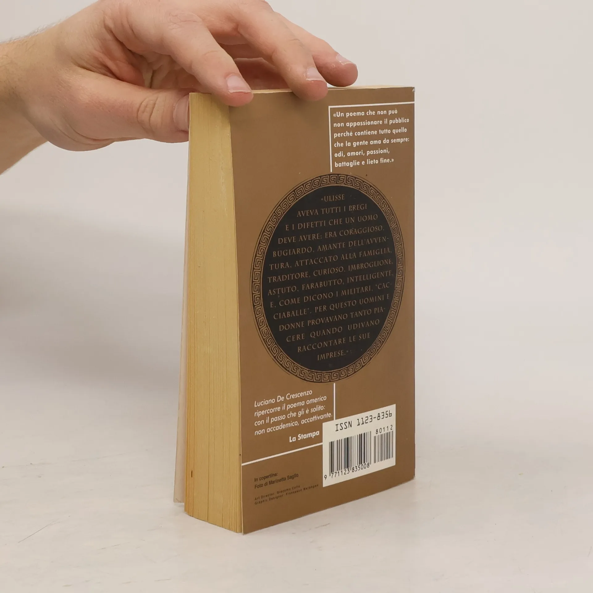 Ulisse aveva tutti i pregi e i difetti che un uomo deve avere: era coraggioso, bugiardo, amante dell'avventura, attacato alla famiglia, traditore, curioso, imbroglione, astuto, farabutto, intelligente, e, come dicono i militari, "cacciaballe". Per questo uomini e donne provavano tanto piacere quando udivano raccontare le sue imprese. (Luciano De Crescenzo, Nessuno)