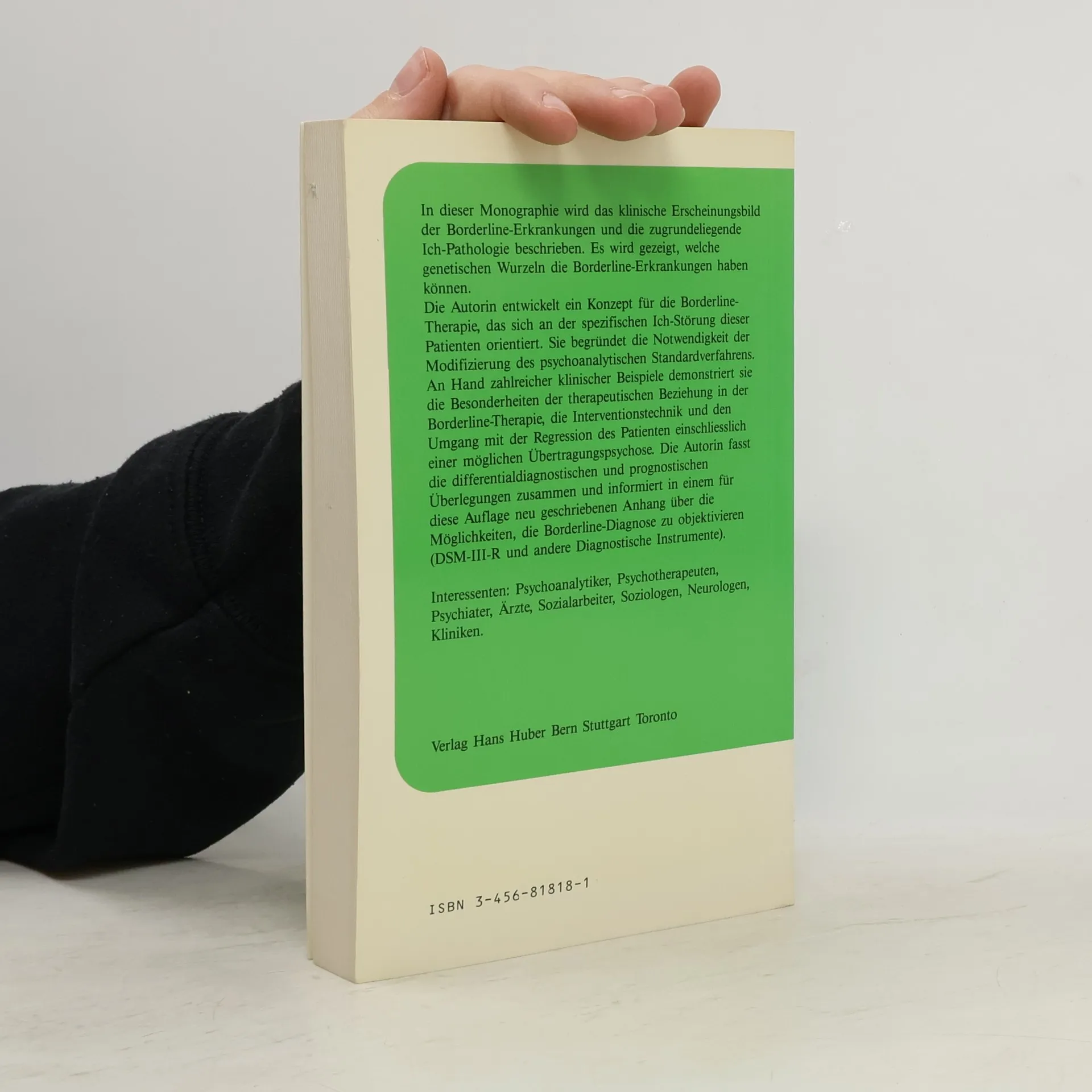 In dieser Monografie wird das klinische Erscheinungsbild der Borderline-Erkrankungen sowie die zugrunde liegende Ich-Pathologie beschrieben. Die genetischen Wurzeln dieser Erkrankungen werden beleuchtet. Die Autorin entwickelt ein Konzept für die Borderline-Therapie, das auf der spezifischen Ich-Störung der Patienten basiert, und begründet die Notwendigkeit, das psychoanalytische Standardverfahren zu modifizieren. Zahlreiche klinische Beispiele verdeutlichen die Besonderheiten der therapeutischen Beziehung, die Interventionstechnik und den Umgang mit der Regression des Patienten, einschließlich möglicher Übertragungspsychosen. Differentialdiagnostische und prognostische Überlegungen werden zusammengefasst, und im Anhang werden verschiedene Möglichkeiten zur Objektivierung der Borderline-Therapie vorgestellt. Zudem enthält der Anhang eine von John G. Gunderson autorisierte Version des Diagnostischen Interviews für Borderline-Patienten (DIB-R). Die siebte Auflage wurde vollständig überarbeitet und erweitert, wobei das Verständnis der Borderlinestörung als Mentalisierungsmangel (Fonagy), seelischer Rückzug (Steiner) und als Reaktion auf traumatische Kindheitserfahrungen aufgenommen wurde. Der klinische Teil umfasst nun auch das Manual zur psychodynamischen Therapie der Borderline-Persönlichkeit von Clarkin, Yeomans und Kernberg.