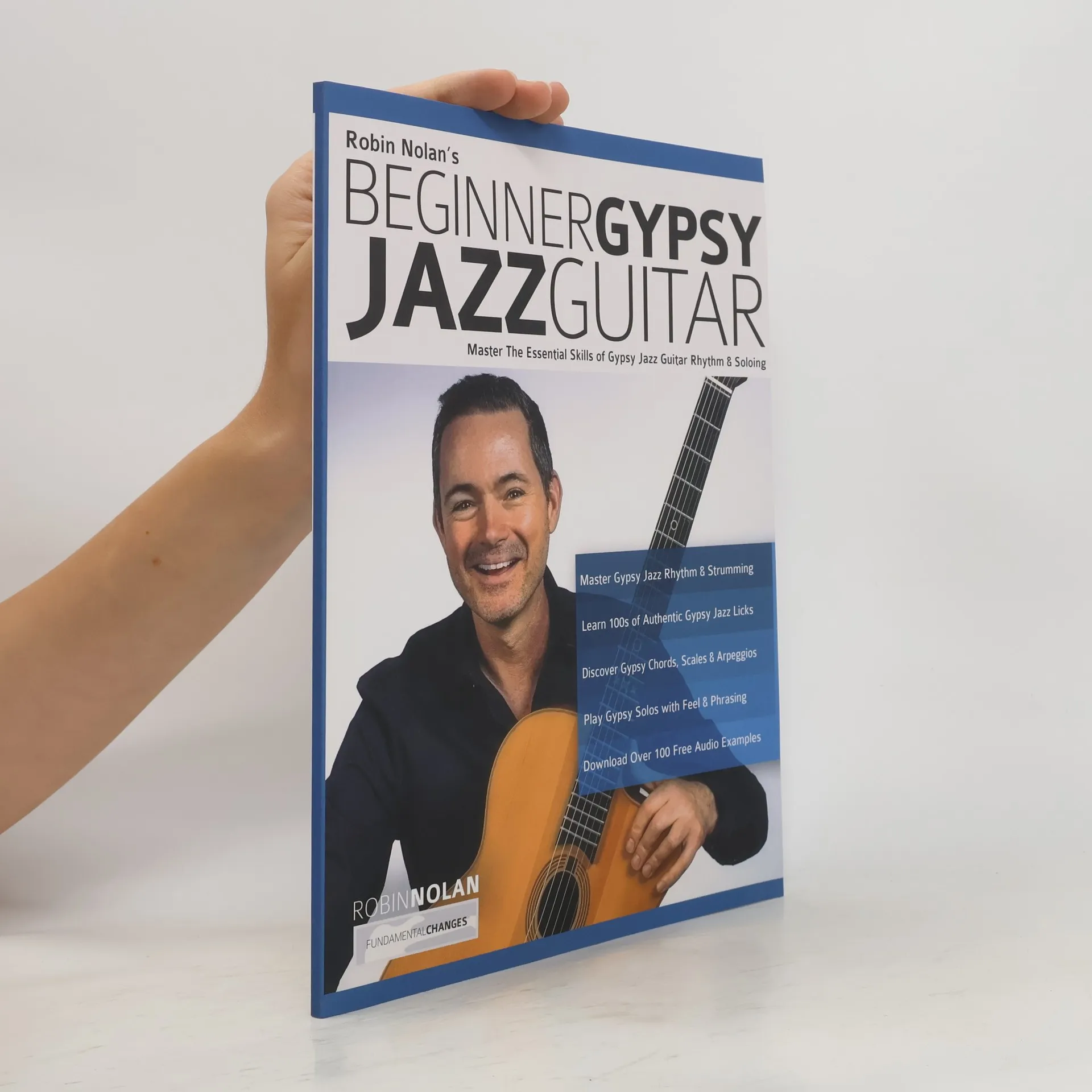 Robin Nolan’s Beginner Gypsy Jazz Guitar Robin Nolan has spent his life sharing his first-hand Gypsy Jazz guitar experience with a worldwide community of musicians, and his insights have revolutionised the playing thousands of grateful students. In Beginner Gypsy Jazz Guitar Robin Nolan creates the perfect framework to learn the essentials of the style. First, you’ll master Then, you’ll discover art of Gypsy Jazz guitar Robin also introduces you to his Gig-Ready Bootcamp!These are the powerful performance skills that prepare you for any jam session, such We’ve packed this book full of some amazing bonuses to help you reach your goals much more quickly. Bonus 1: 22 walk-through videos where Robin helps you perfect the techniques in the book. Bonus 2: An exclusive 1-hour video lesson that teaches you perfect Gypsy Jazz guitar rhythm playing. Bonus 3: Get Robin’s personal Spotify playlist of essential Gypsy Jazz tunes, specially curated for you. Beginner Gypsy Jazz Guitar contains over 100 notated examples, each with supporting audio examples, so you can hear exactly how everything should sound. You’ll be able to play along with the track to perfect your rhythm, tone and feel. You can download them all for free from our dedicated website. Buy it now and learn Beginner Gypsy Jazz Guitar from one of its true masters.