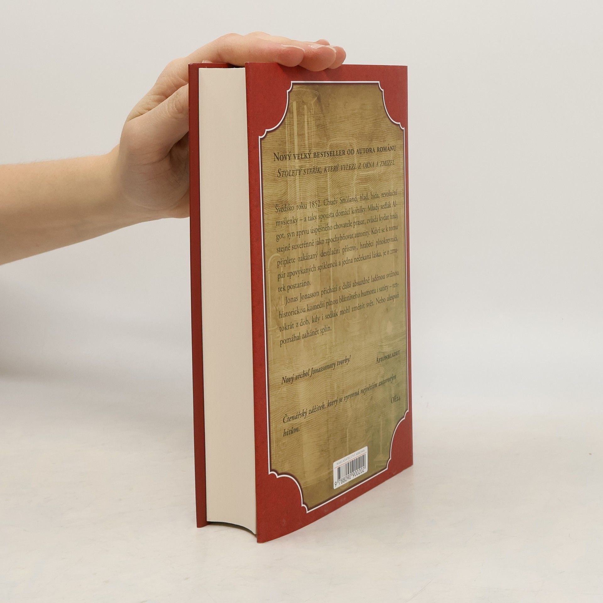 Švédsko roku 1852. Chudý Smaland, hlad, bída, revoluční myšlenky – a taky spousta domácí kořalky. Mladý sedlák Algot, syn zprvu úspěšného chovatele prasat, zvládá kydat hnůj stejně suverénně jako zpochybňovat autority. Když se k tomu připlete zakázaný destilační přístroj, hraběcí plnokrevníci, pár zpovykaných spiklenců a jedna nečekaná láska, je o zmatek postaráno. Jonas Jonasson přichází s další absurdně laděnou svižnou historickou komedií plnou bláznivého humoru i satiry – tentokrát z dob, kdy i sedlák mohl změnit svět. Nebo alespoň pomáhal zahánět splín.