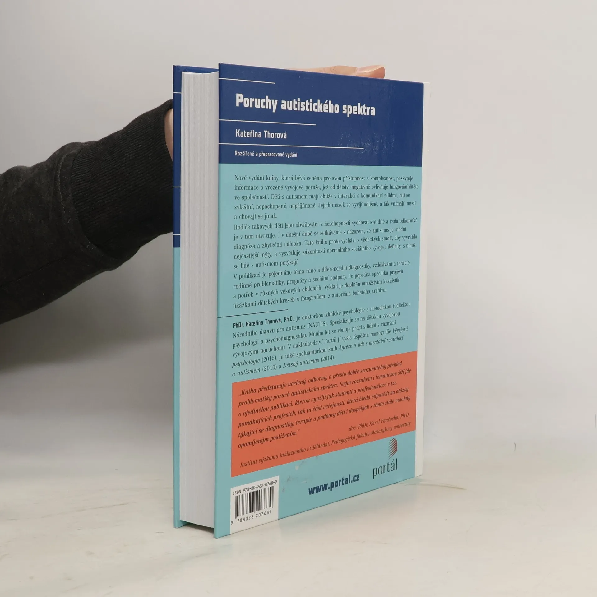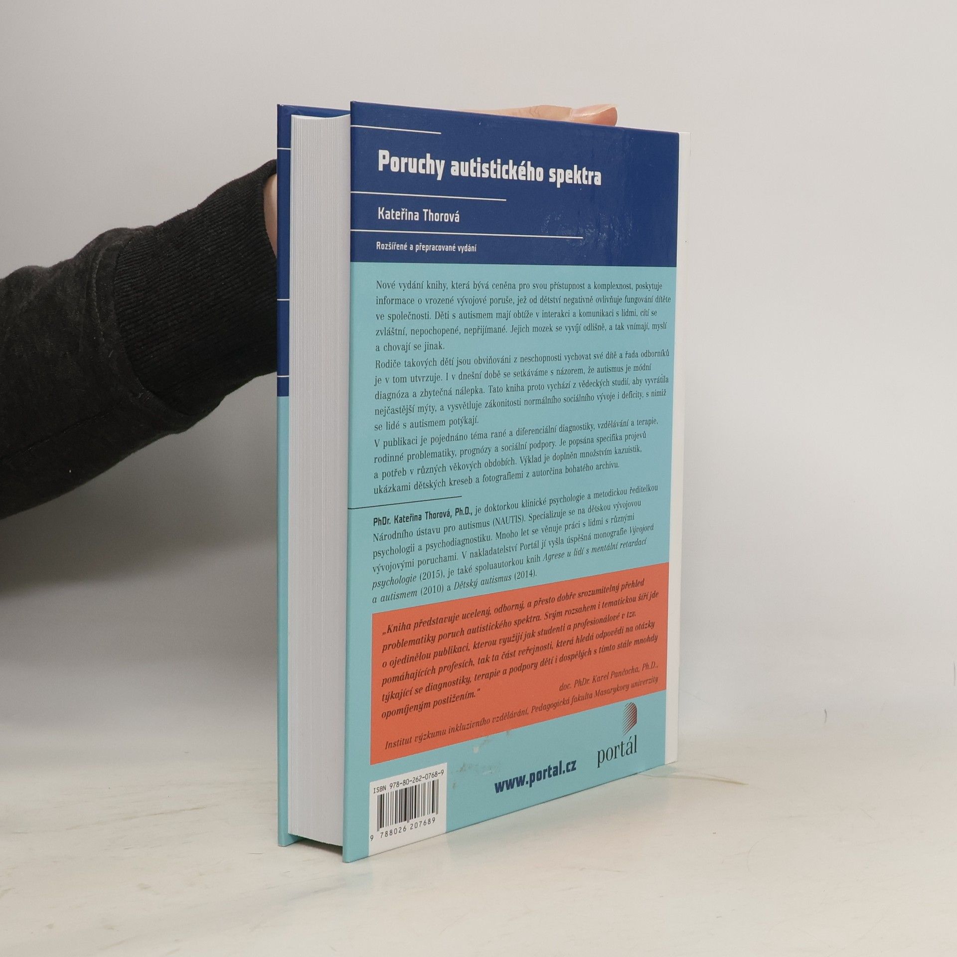Publikace zkušené psycholožky přináší komplexní pohled na jednu ze závažných dětských vývojových poruch, jejíž dopad se promítá zejména do oblasti sociálních interakcí, vztahů a komunikace. K popisovaným poruchám autistického spektra řadíme především dětský autismus, atypický autismus a Aspergerův syndrom. Mezi pojednávaná témata patří například raná diagnostika v praxi, diferenciální diagnostika z pohledu psychologa, vzdělávání a terapie, rodinná problematika, prognóza, specifika vývojové trajektorie poruchy, školní a sociální problematika. Výklad je doplněn množstvím kazuistik, ukázkami dětských kreseb a fotografiemi z autorčina bohatého archivu.