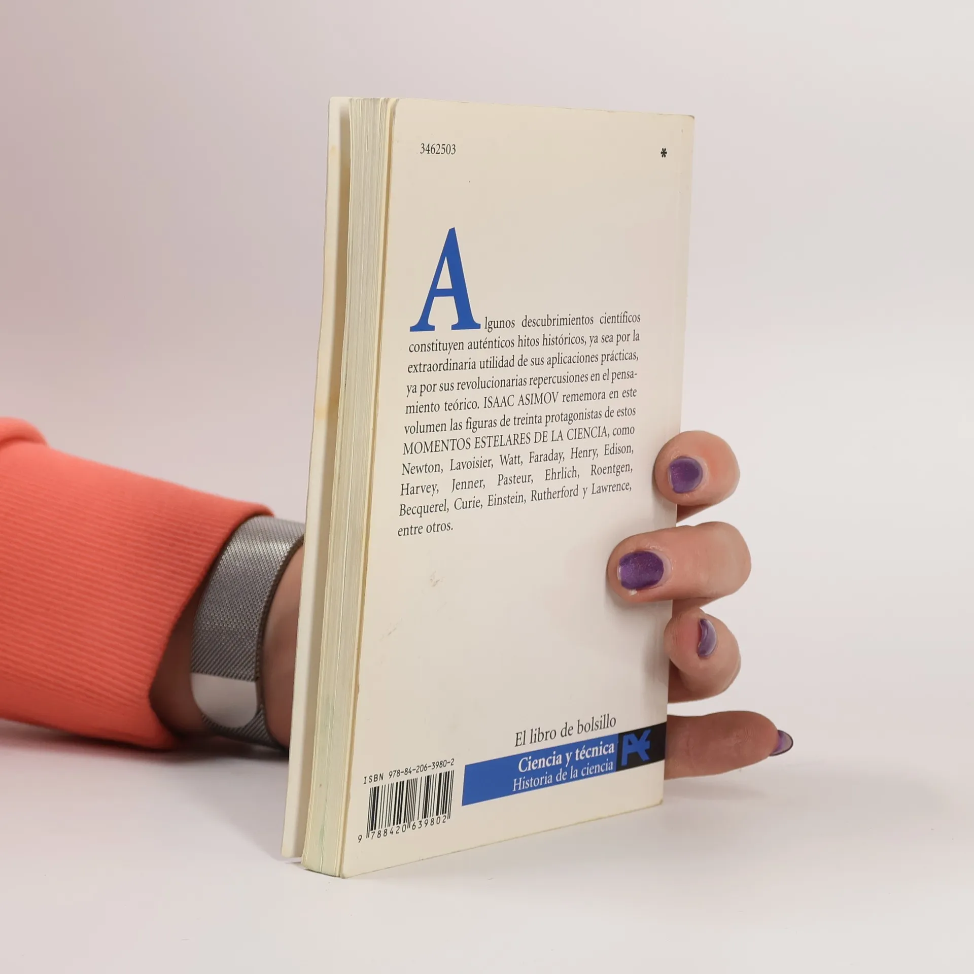 Algunos descubrimientos científicos constituyen auténticos hitos históricos, ya sea por la extraordinaria utilidad de sus aplicaciones prácticas, ya por sus revolucionarias repercusiones en el pensamiento teórico. Isaac Asimov rememora en este volumen las figuras de treinta protagonistas de estos Momentos estelares de la ciencia, como Newton, Lavoisier, Watt, Faraday, Henry, Edison, Harvey, Jenner, Pasteur, Ehrlich, Roentgen, Becquerel, Curie, Einstein, Rutherford y Lawrence, entre otros.