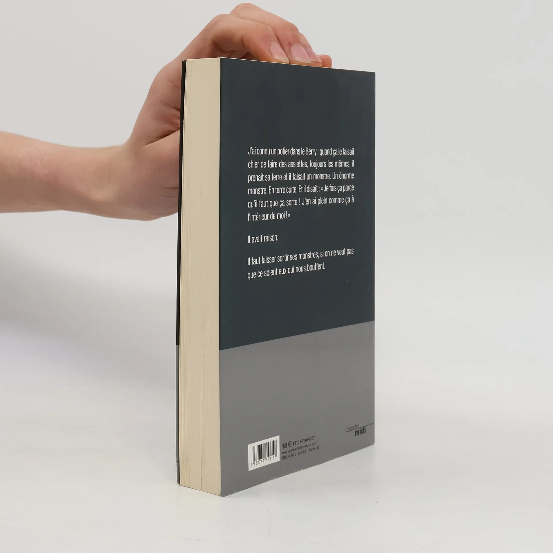 J'ai connu un potier dans le Berry : quand ça le faisait chier de faire des assiettes, toujours les mêmes, il prenait sa terre et il faisait un monstre. Un énorme monstre. En terre cuite. Et il disait : "Je fais ça parce qu'il faut que ça sorte ! J'en ai plein comme ça à l'intérieur de moi !" Il avait raison. Il faut laisser sortir ses monstres, si on ne veut pas que ce soient eux qui nous bouffent.