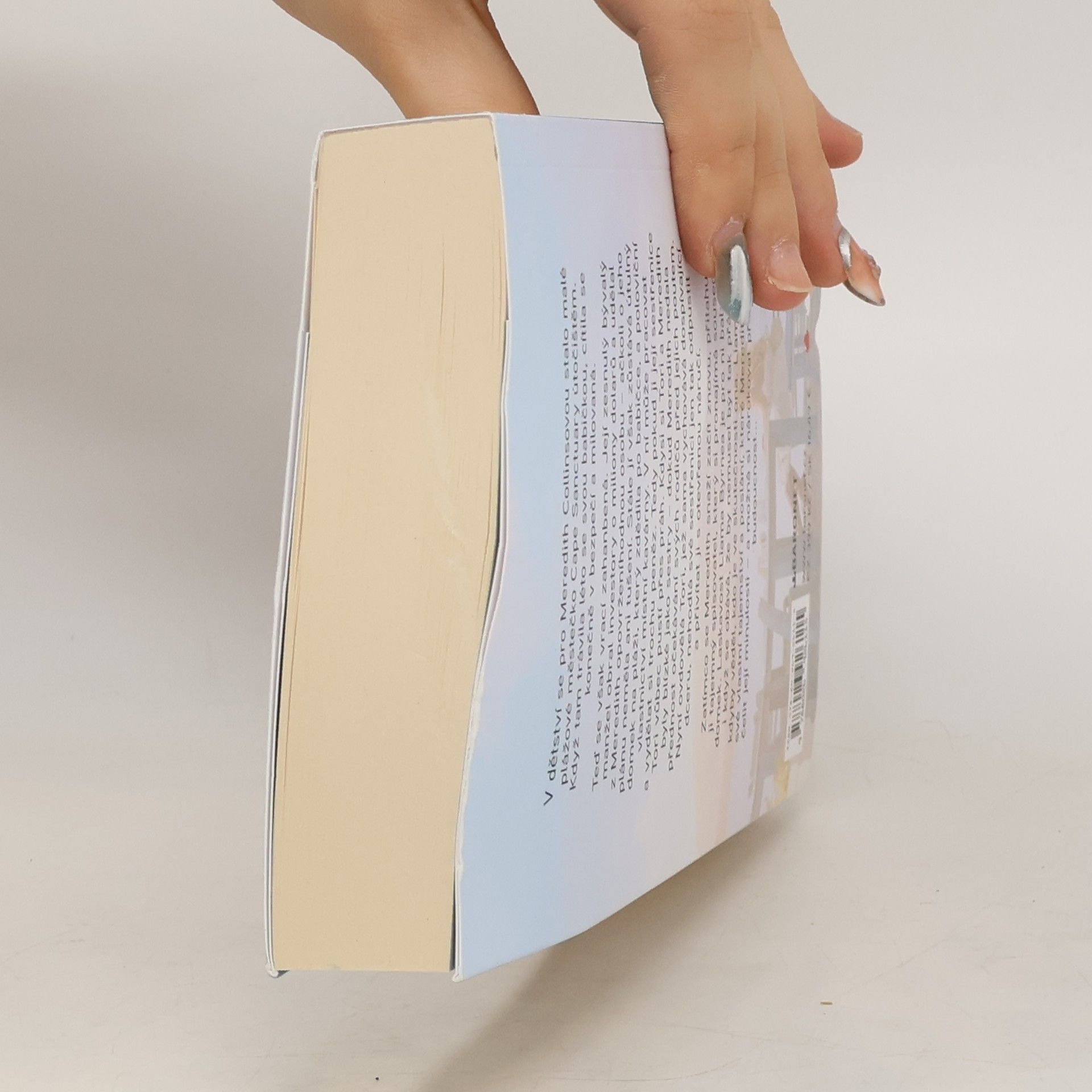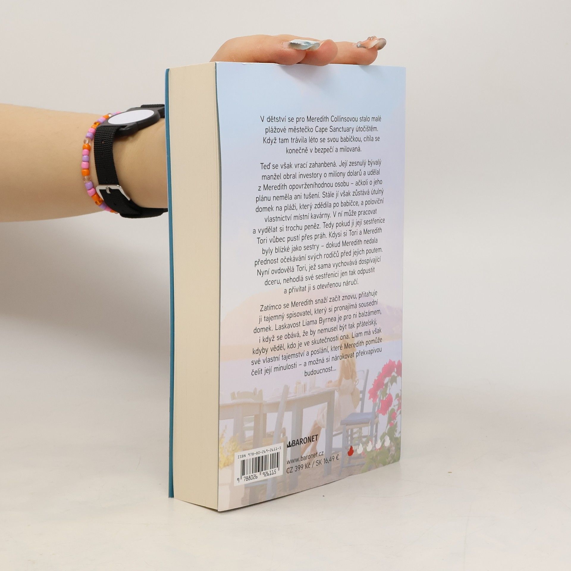 Láska se může skrývat i v kavárničce na konci pláže!Když byla Meredith ještě dítě, trávila léto se svou babičkou v malém městečku, kde byla konečně šťastná. Teď se sem s hanbou vrací, protože její zesnulý bývalý manžel obral investory. Stále jí však zůstává domek na pláži, který zdědila po babičce, a poloviční vlastnictví místní kavárny. V ní může pracovat a vydělat si trochu peněz. Tedy pokud ji její sestřenice Tori pustí přes práh. Zatímco se Meredith snaží začít znovu, přitahuje ji tajemný spisovatel, který si pronajímá sousední domek. Jeho laskavost je pro ni jako balzám, i když i on má svá tajemství…