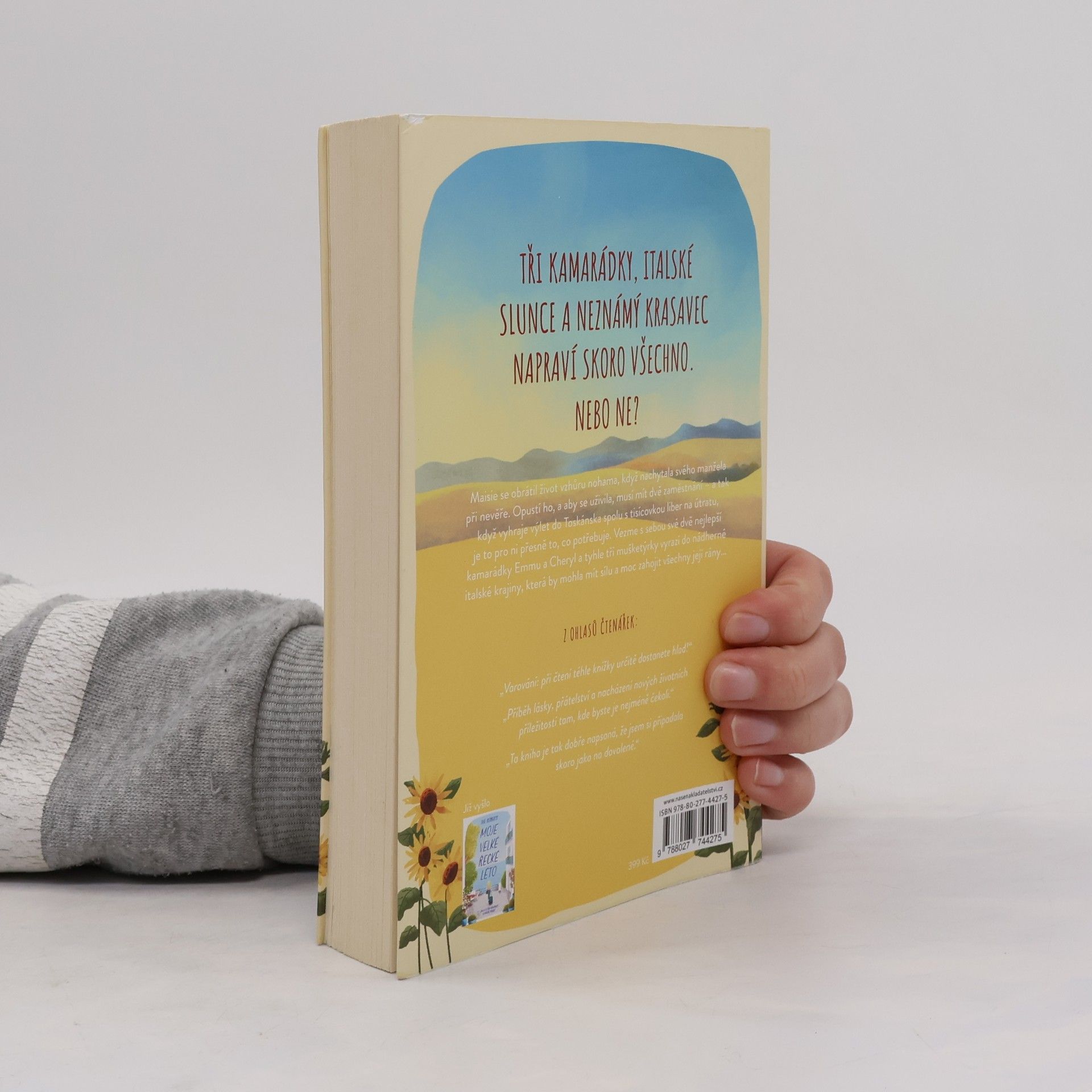 Maisie Knightová má všechno. Úžasného manžela. Úspěšný podnik. Krásný domov.Jenže jednoho dne o všechno přijde – načapá svého manžela při nevěře. Když ale vyhraje dovolenou v Itálii, nemůže se týdne pod toskánským sluníčkem dočkat.Se svými nejlepšími kamarádkami Cheryl a Emmou, které vezme s sebou, vyrazí na dámskou jízdu do vily Marisa. Pole zlatých slunečnic by mohla být dokonalým lékem na Maisiino zlomené srdce – a místní farmář, podezřele dokonalý Gianni s hustými černými vlasy a usměvavýma očima, jí poskytne vítané rozptýlení.Rána, kdy ji probouzí vůně čerstvé kávy, pohledy na zvlněné kopce, jízdy na mopedu s přidrzlými Italy a báječné těstoviny s proseccem Maisie pomůžou zapomenout na její problémy. Samotnou ji překvapí, že po tom všem trápení, které zažila, začne důvěřovat Giannimu – a ještě víc ji udiví žár, který ji v jeho přítomnosti zaplavuje, a není to vinou horkého italského slunce…Na tak krásný život by si Maisie dokázala zvyknout, ale zrovna když se jí vrací jiskra, stane se něco strašného. V jediném okamžiku ji dohoní minulost, otevře staré rány a Maisie musí učinit rozhodnutí, které jí změní život. Má se snad rozloučit s létem plným lásky a limoncella?