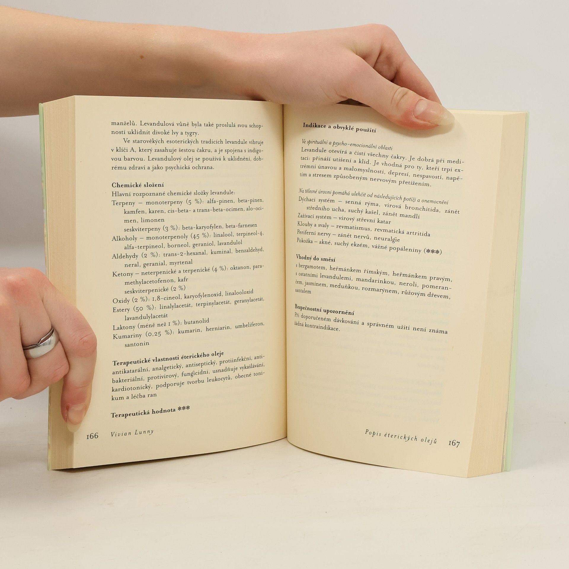 Kniha v první části nabízí základní informace o průběhu těhotenství a porodu, popis běžných potíží v tomto období a osvědčené recepty na jejich zvládnutí pomocí éterických olejů, popisuje těhotenskou a dětskou masáž (+ fotografický průvodce v příloze). Druhá část je věnována obecným informacím o aromaterapii a způsobech použití éterických olejů. Třetí část popisuje vybrané éterické a nosné oleje a seznam vhodných a nevhodných éterických olejů pro období těhotenství.