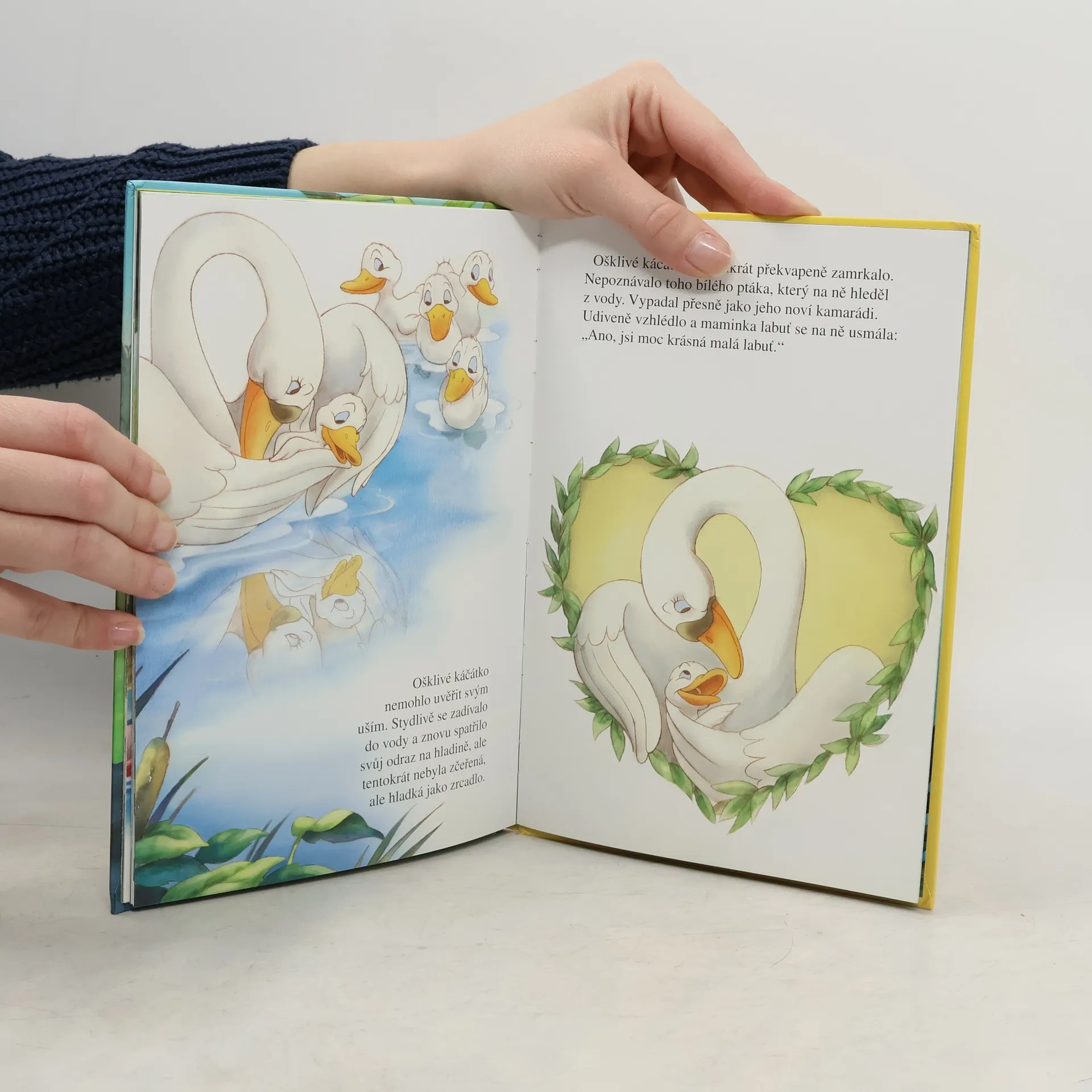 Jednoho letního dne se matce kačeně vylíhlo pět káčátek. Čtyři z nich byla krásně heboučká a žluťoučká, jen to páté se na první pohled moc nevyvedlo. Co jen si ošklivé káčátko kvůli tomu od ostatních kachen vytrpělo! Ale nakonec přece jen našlo rodinu, ktará ho přijala mezi sebe.