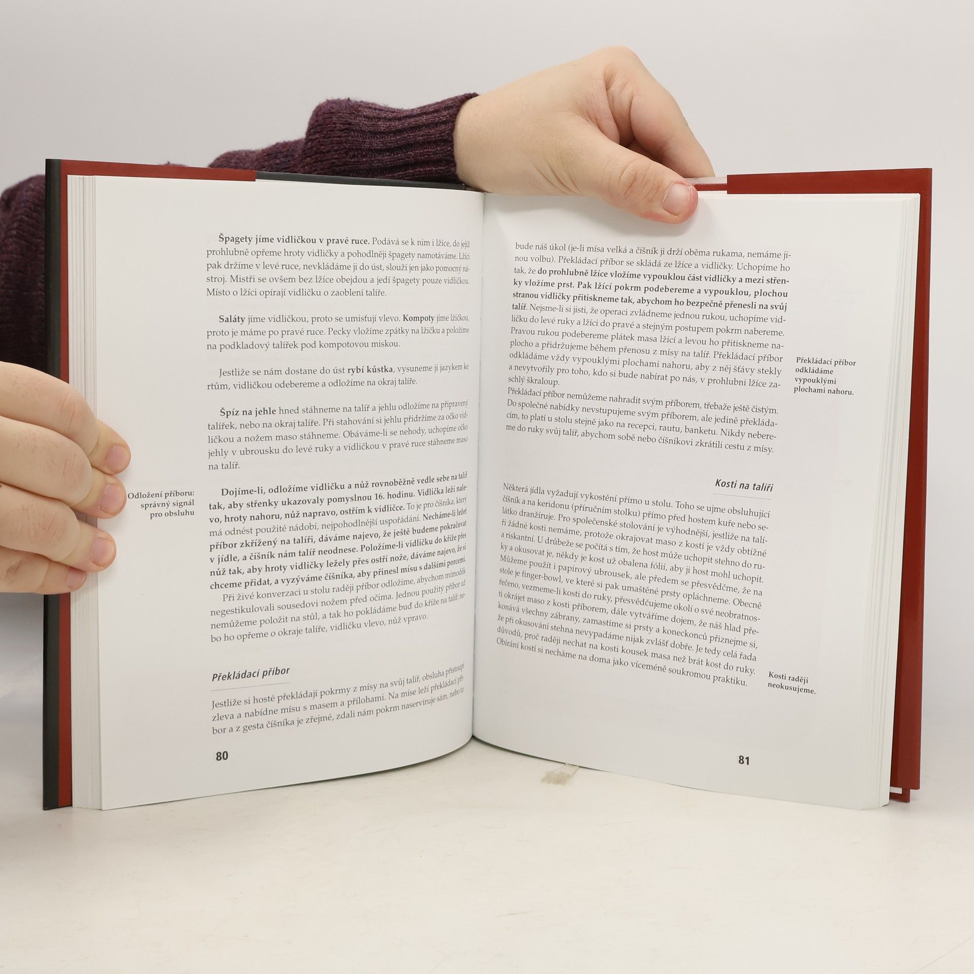 Kniha je univerzální průvodce různými společenskými událostmi. Seznamuje čtenáře se všemi formami společenského styku, se správným řešením společenských situací, s pravidly jednání jak doma, tak v cizině. Množstvím informací a rad překonává všechny dosud vydané příručky společenského chování. Poskytuje praktické návody, jak se chovat ve společnosti, v kanceláři, na ulici i doma, jak správně stolovat, jak se oblékat, jak se chovat na recepci, na banketu, jak připravit návštěvu ústavního činitele, jak jednat se zahraničními partnery. Vychází ze soudobého pojetí etikety a protokolu. Je nezbytnou pomůckou pro školu, úřad, firmu i rodinu.... celý text