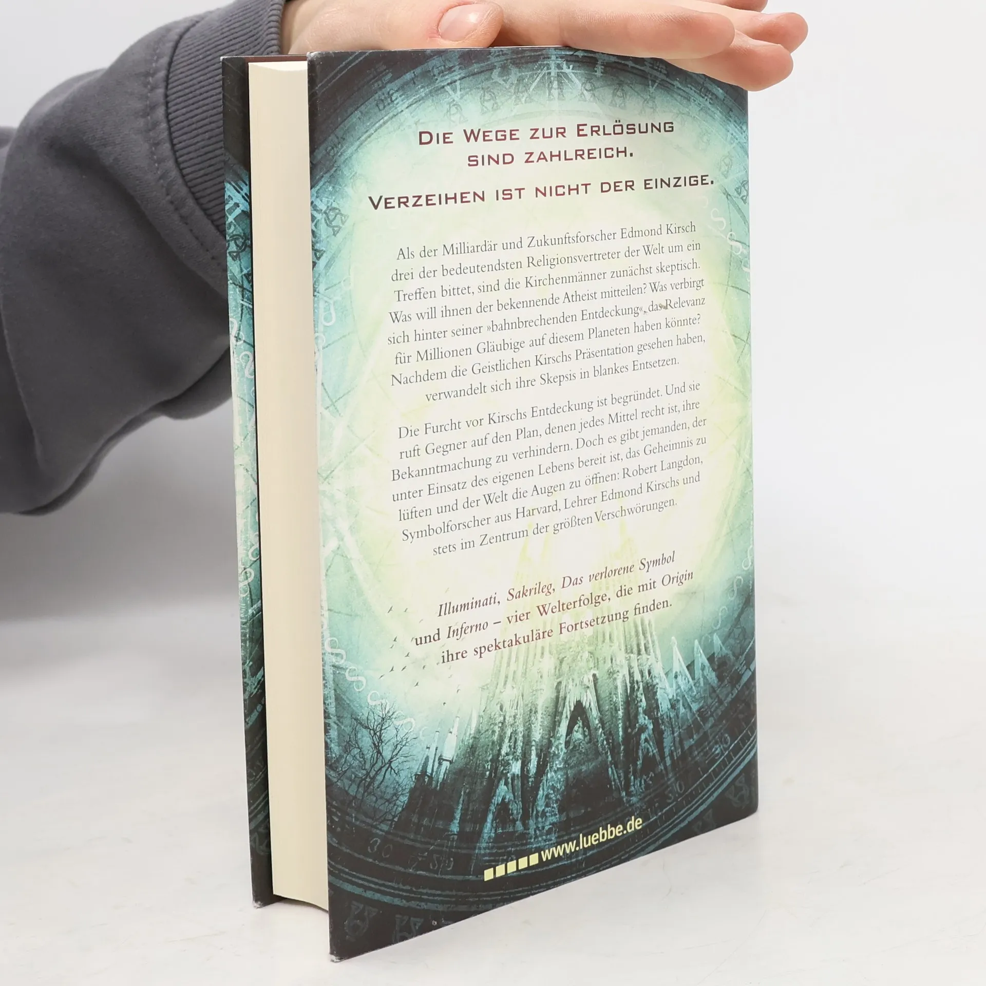 ILLUMINATI, SAKRILEG, DAS VERLORENE SYMBOL und INFERNO - vier Welterfolge, die mit ORIGIN ihre spektakuläre Fortsetzung finden.Die Wege zur Erlösung sind zahlreich.Verzeihen ist nicht der einzige.Als der Milliardär und Zukunftsforscher Edmond Kirsch drei der bedeutendsten Religionsvertreter der Welt um ein Treffen bittet, sind die Kirchenmänner zunächst skeptisch. Was will ihnen der bekennende Atheist mitteilen? Was verbirgt sich hinter seiner „bahnbrechenden Entdeckung“, das Relevanz für Millionen Gläubige auf diesem Planeten haben könnte? Nachdem die Geistlichen Kirschs Präsentation gesehen haben, verwandelt sich ihre Skepsis in blankes Entsetzen.Die Furcht vor Kirschs Entdeckung ist begründet. Und sie ruft Gegner auf den Plan, denen jedes Mittel recht ist, ihre Bekanntmachung zu verhindern. Doch es gibt jemanden, der unter Einsatz des eigenen Lebens bereit ist, das Geheimnis zu lüften und der Welt die Augen zu öffnen: Robert Langdon, Symbolforscher aus Harvard, Lehrer Edmond Kirschs und stets im Zentrum der größten Verschwörungen.