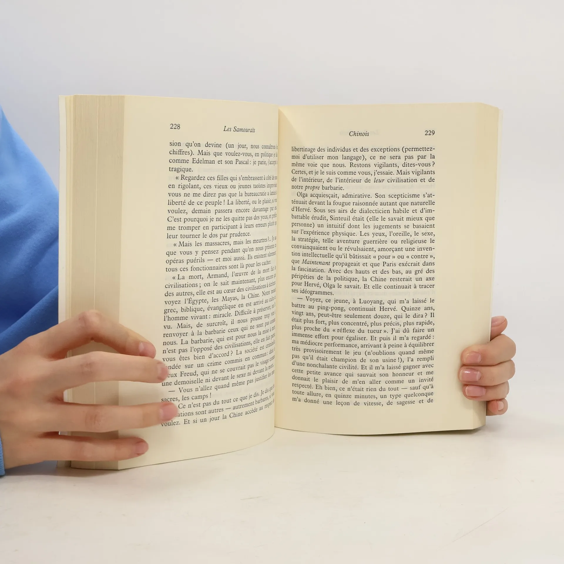 Une aventure s'est déroulée en France entre 1968 et 1990: fièvre de la pensée et des corps, passions excessives, goût du risque. Les personnages de ce roman en sont issus. Originaire d'un pays de l'Est, Olga rencontre à Paris l'écrivain Hervé Sinteuil, directeur de la revue Maintenant, puis sa famille: Mathilde et Jean de Montlaur. Une histoire d'amour " pas comme les autres ", les surprises d'une île secrète, les ravissements d'une naissance. Martin, lui, anthropologue et homme de plaisir, découvre dans les terres australes que l'Etat est un mal, et son anarchisme le conduit de la science à la peinture, mais, surtout, après Mai 68, à une révolte définitive. Carole l'accompagne, fidèle et blessée, que n'épargneront pas le reflux des idées et la dépression. Pendant que ces hommes et ces femmes, dans lesquels se reconnaître une génération, aiment et souffrent, partent en Chine, travaillent à New York, s'installent en Israël ou en Californie, leur destin croise celui de penseurs et d'écrivains illustres de ce temps: Maurice Lauzun, Armand Bréhal, Sherner, Wurst, Edelman, Benserade, Strich-Meyer... L'érotisme, les femmes, le langage, les prisons, la folie: débats, conflits, ruptures. Ces " thèmes " deviennent ici des caractères vivants. Face à eux, Joëlle Cabarus, une psychanalyste, détachée et ironique, tient son journal. Elle observe les autres avec une sympathie désabusée. Les Samouraïs excellaient dans l'art de la guerre comme dans la poésie, la calligraphie ou le rituel du thé. Olga, Hervé, Martin, Carole, Joëlle et les autres poursuivent une expérience qui les conduit parfois à l'erreur, à la violence, à la mort. Ces méditatifs sont les Samouraïs modestes, comiques ou intenses d'une société sans sacré, mais qui leur permet d'aller jusqu'au bout du sens de la vie, jusqu'au bout d'eux-mêmes.